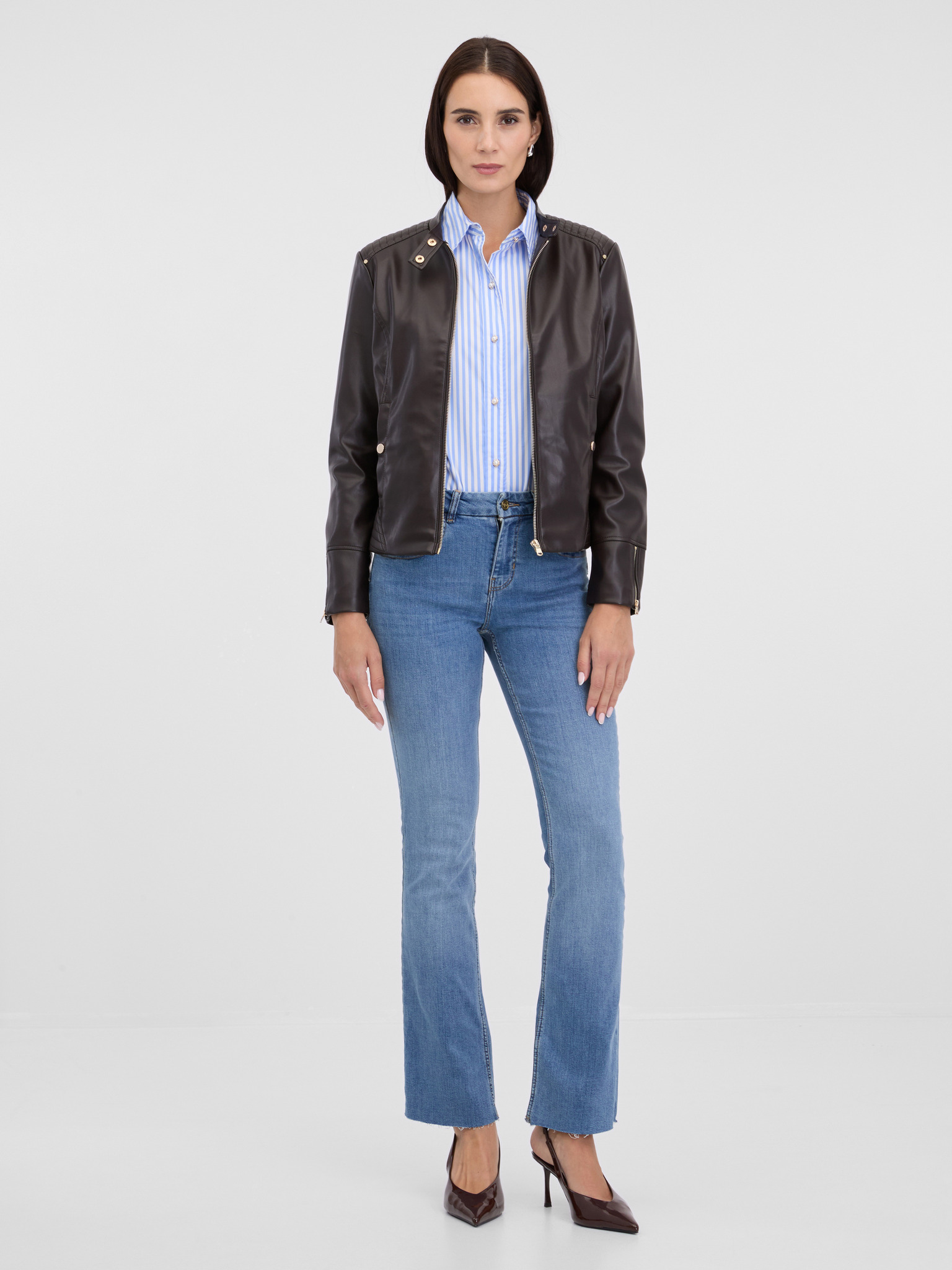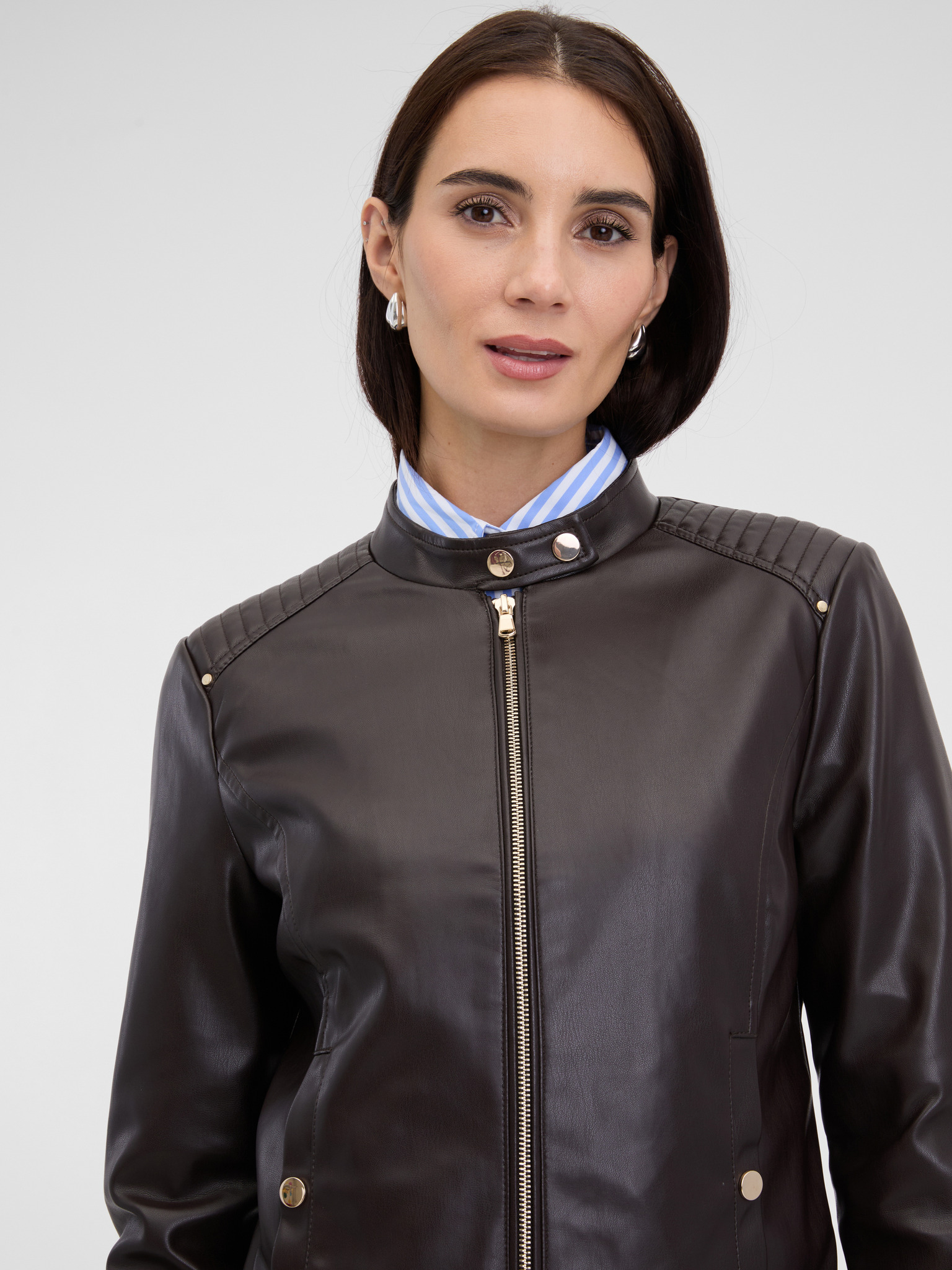 Temno rjava ženska usnjena jakna ORSAY
