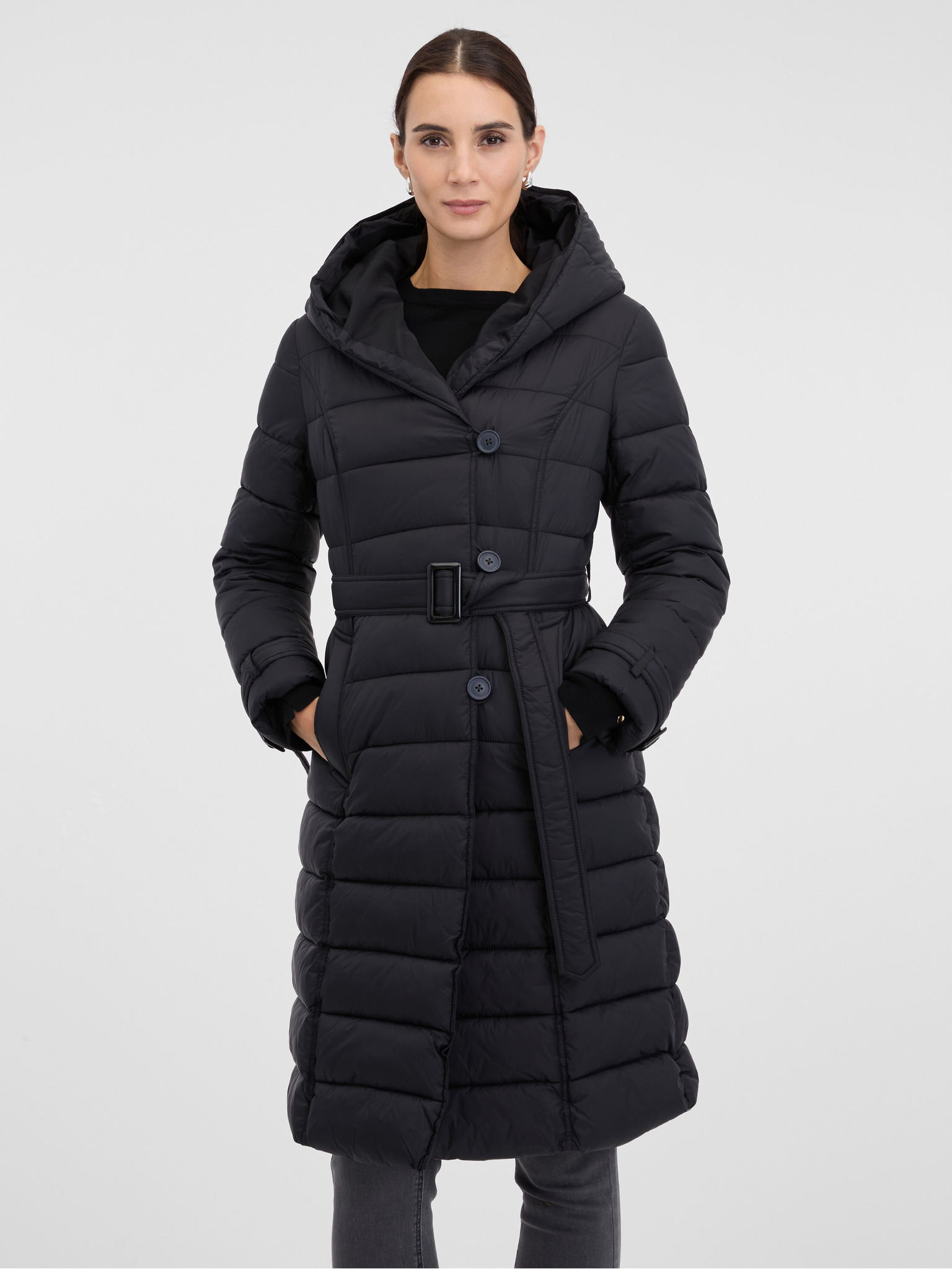 Črni ženski prešiti plašč ORSAY