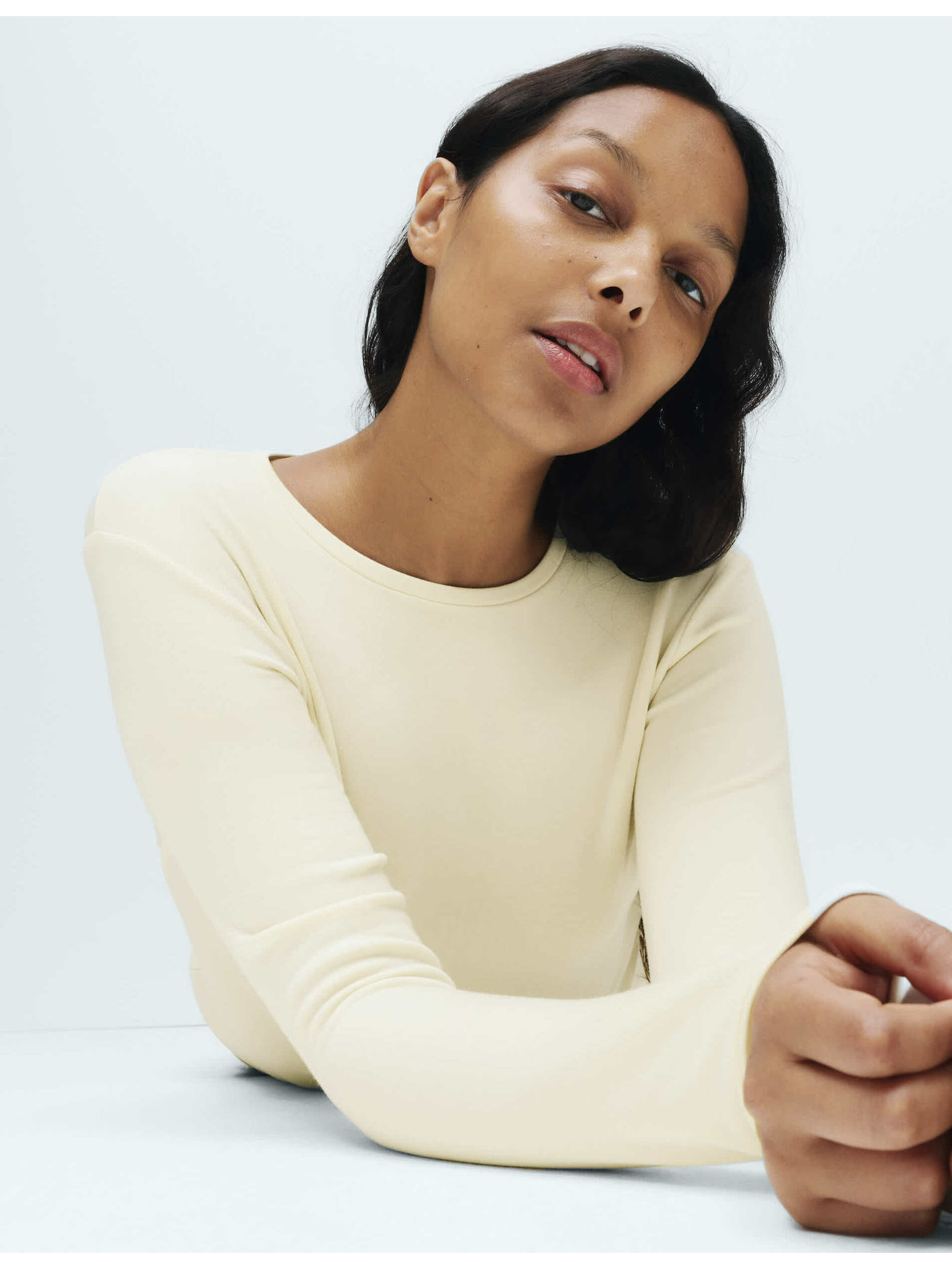 Bež ženski top z dolgimi rokavi