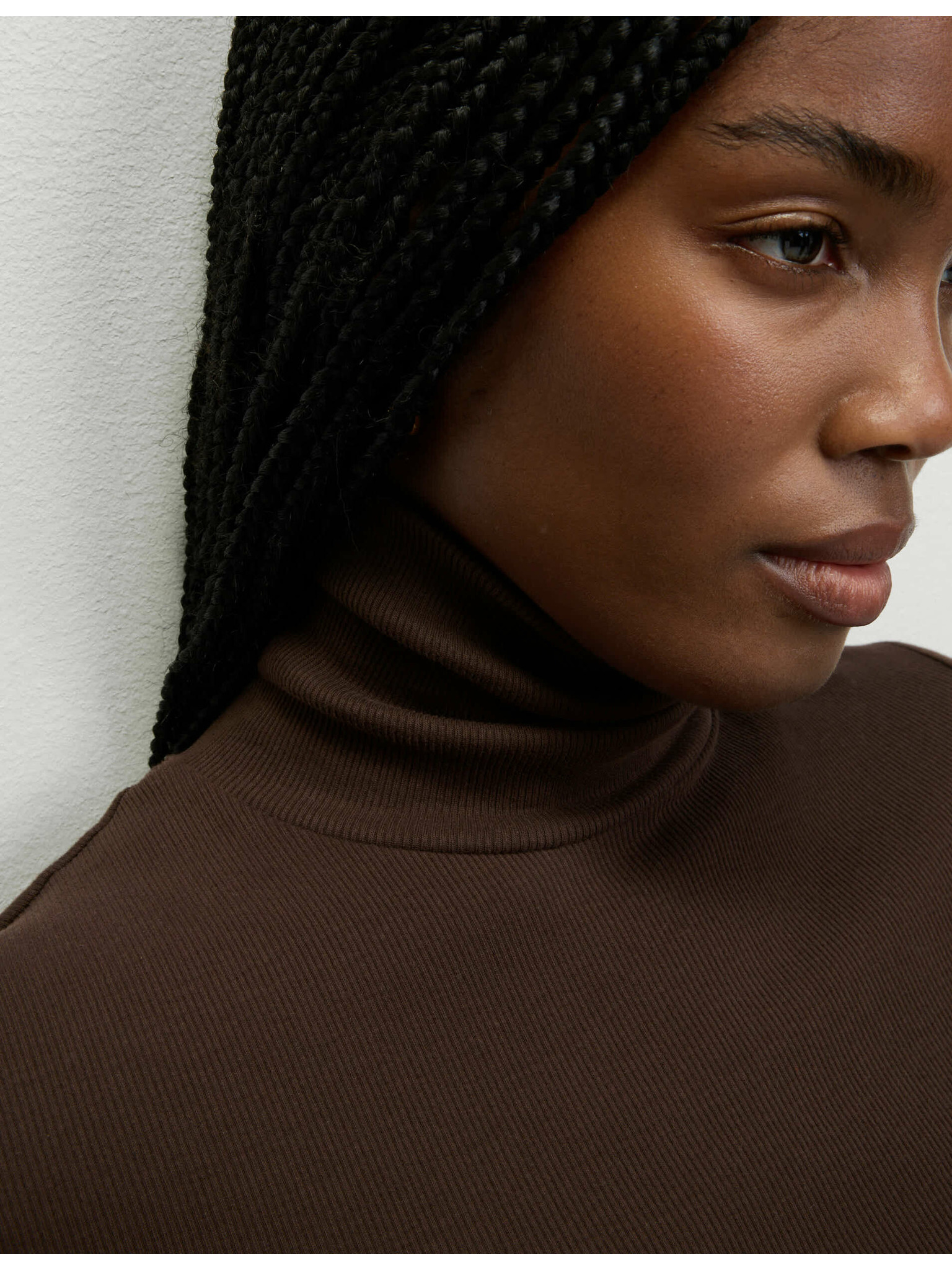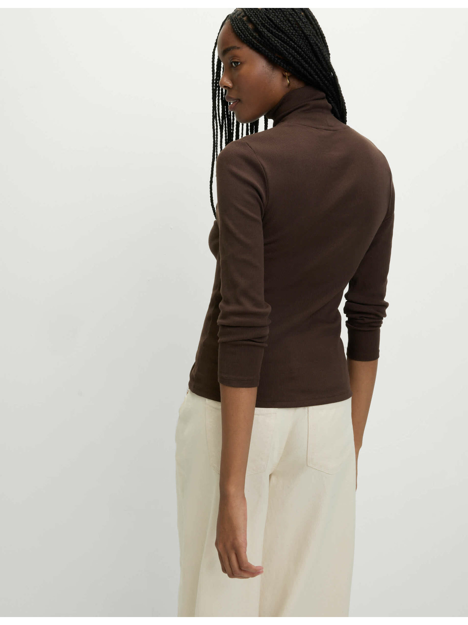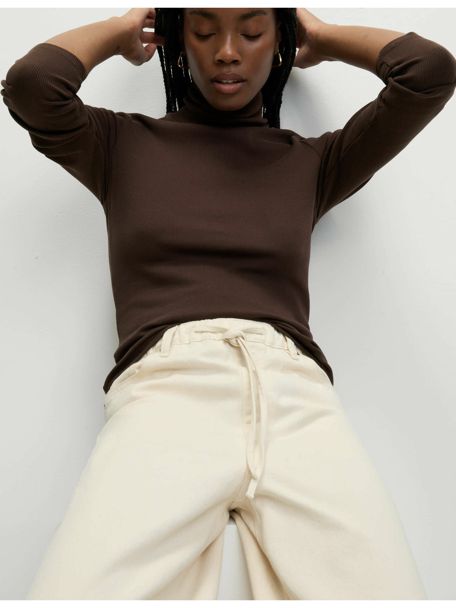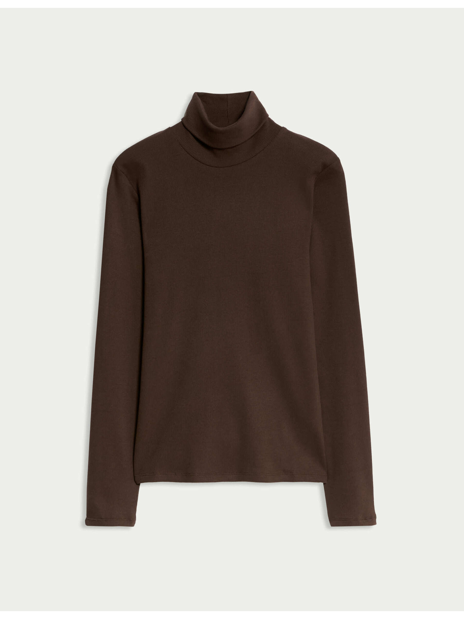 Rebrast top z visokim ovratnikom in visokim deležem bombaža Marks & Spencer smetana