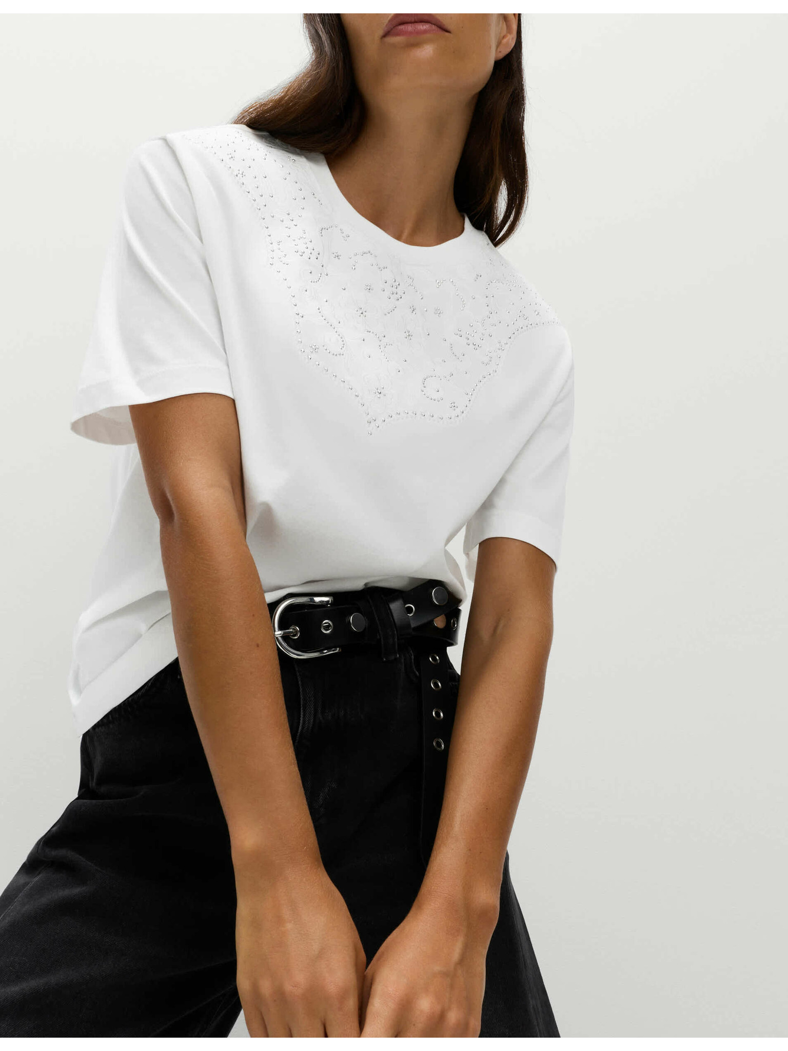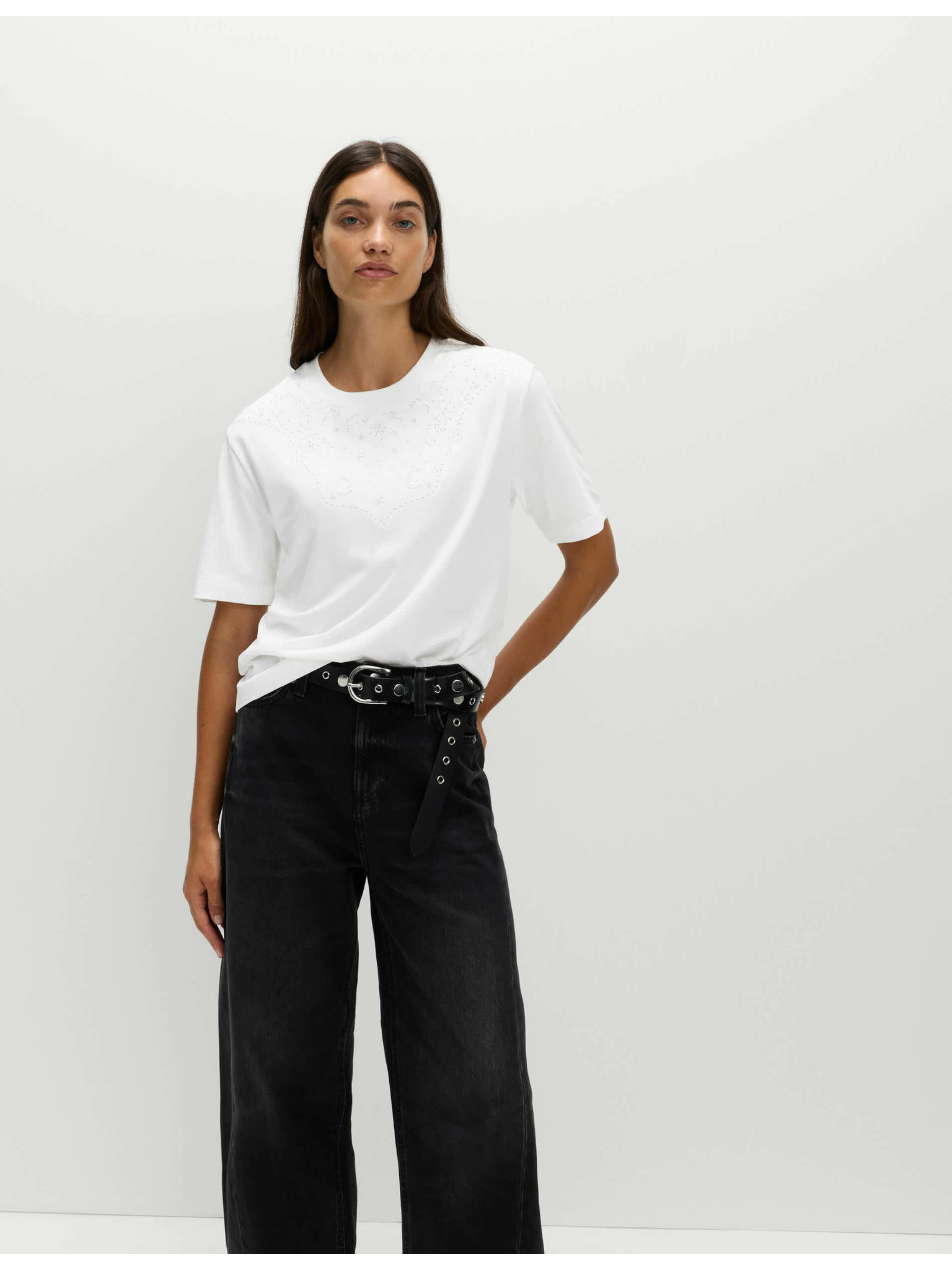 Okrašena majica Lucky iz čiste bombaže Marks & Spencer črna