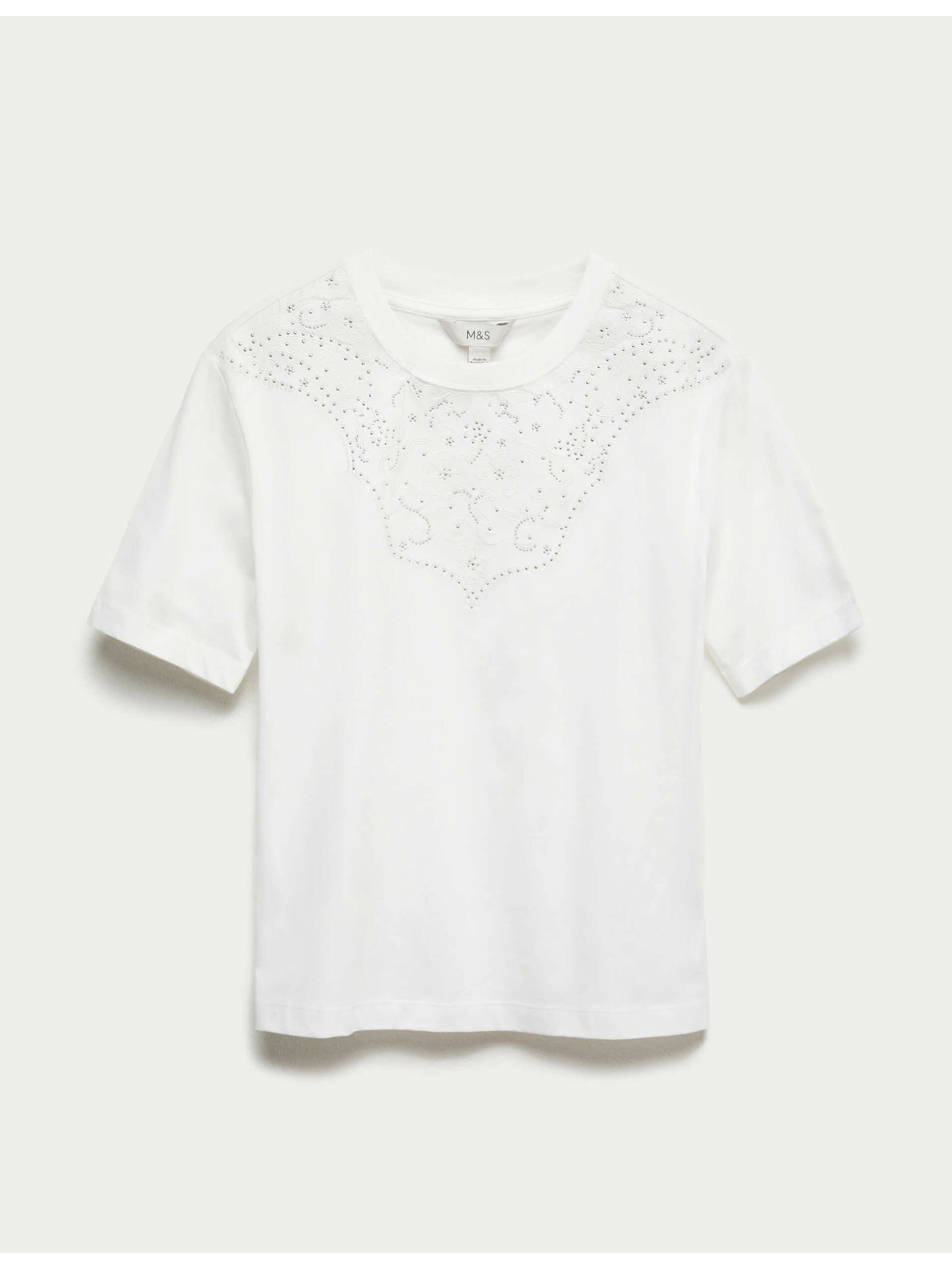 Rebrasta majica z visoko vsebnostjo bombaža, tankega kroja Marks & Spencer bela
