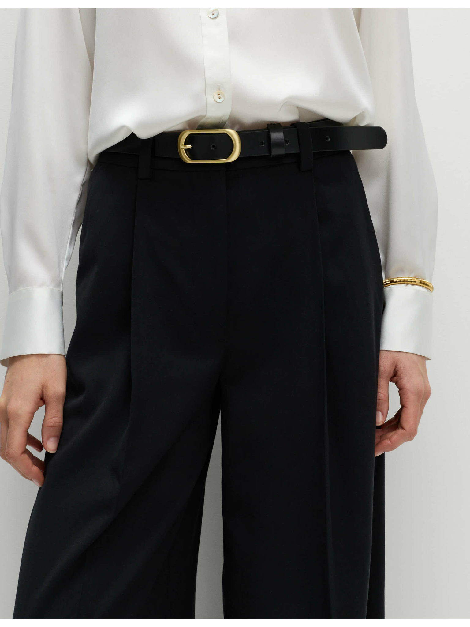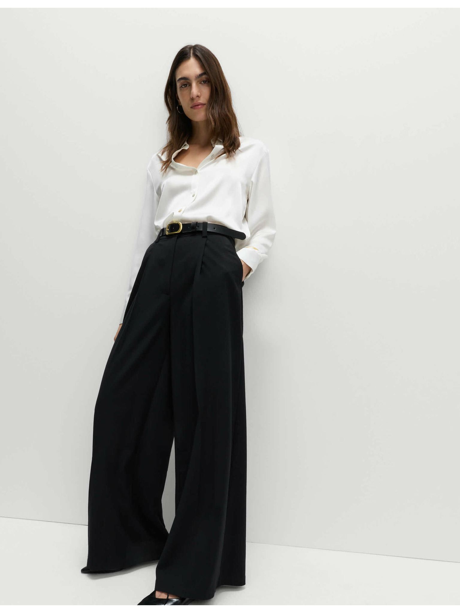 Tkana nagubanjena hlačna krila z širokim hlačnicam Marks & Spencer črna