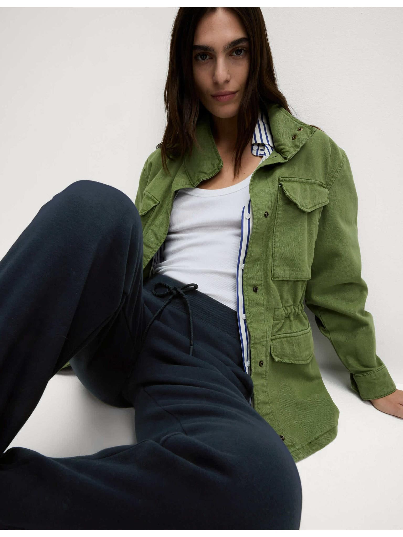 Ozke zvonaste hlače s črtami Marks & Spencer mornarsko modra