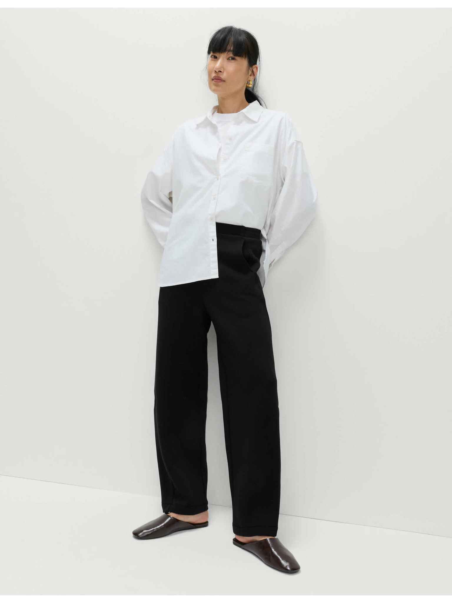 Elegantne črne hlače z gubo Moodo