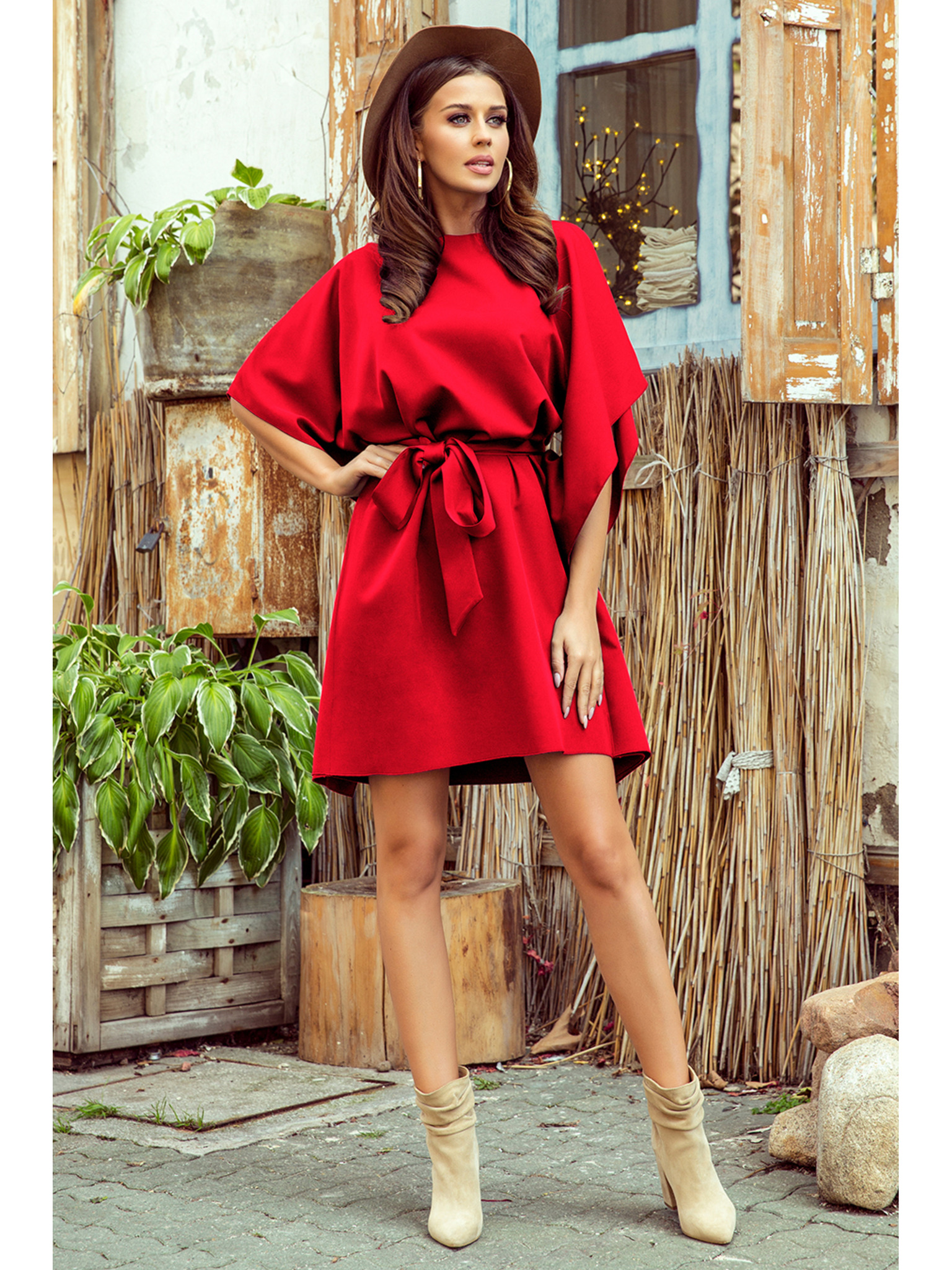 Numoco Klasična obleka s kratkimi rokavi in pasom