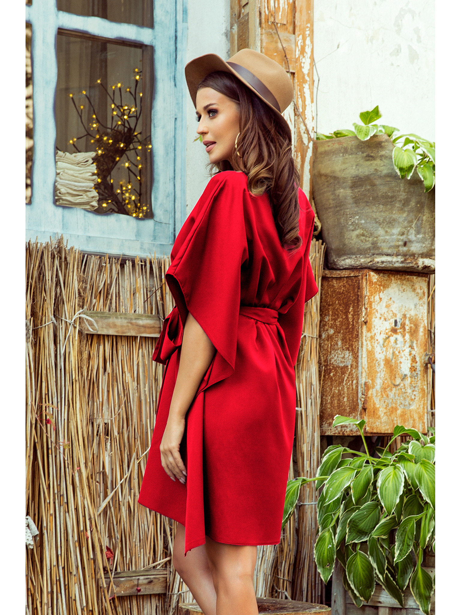 Rdeča midi obleka z volančki Moodo