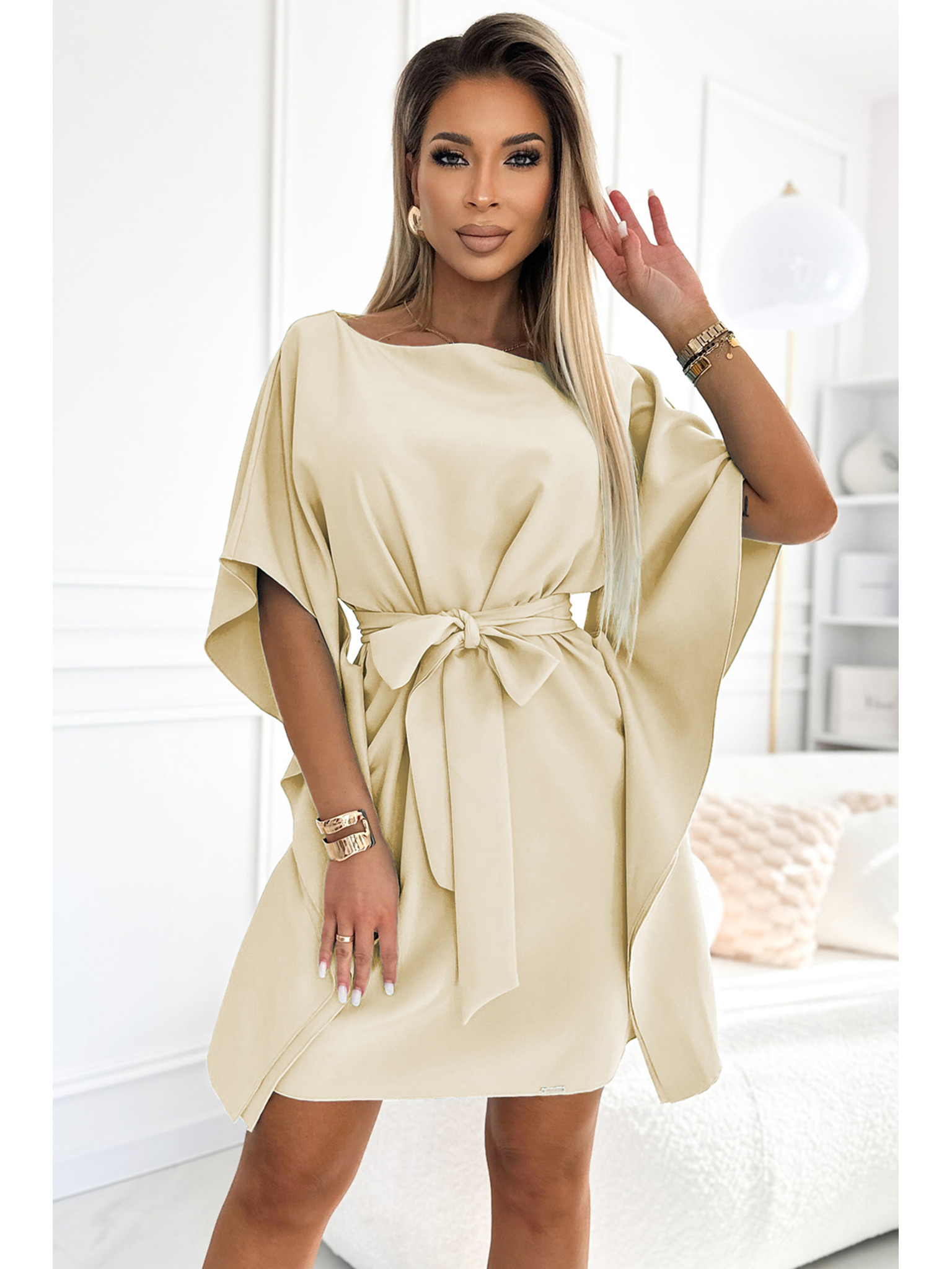 SOFIA Metuljaste obleke z vezavo v pasu - bež