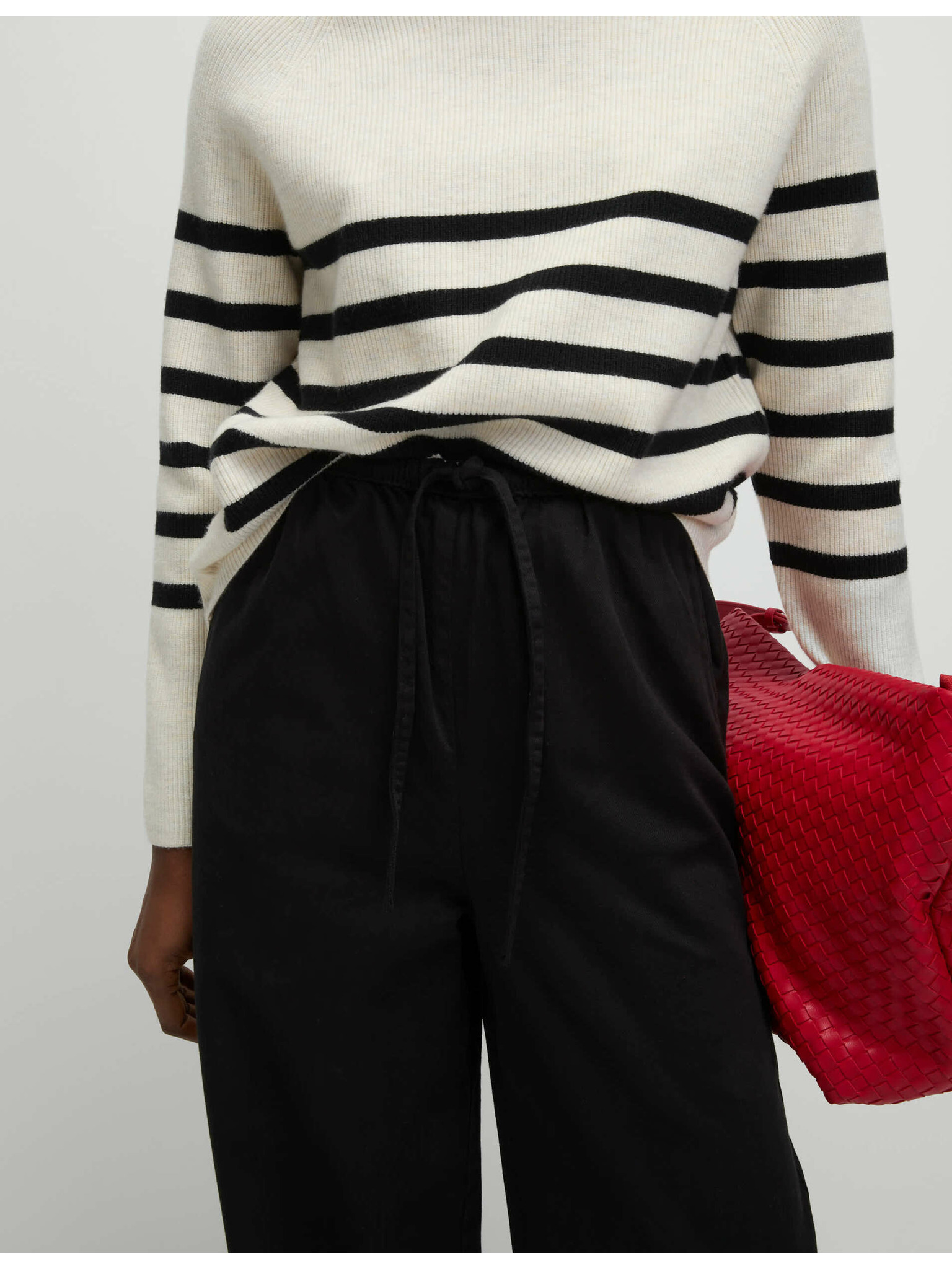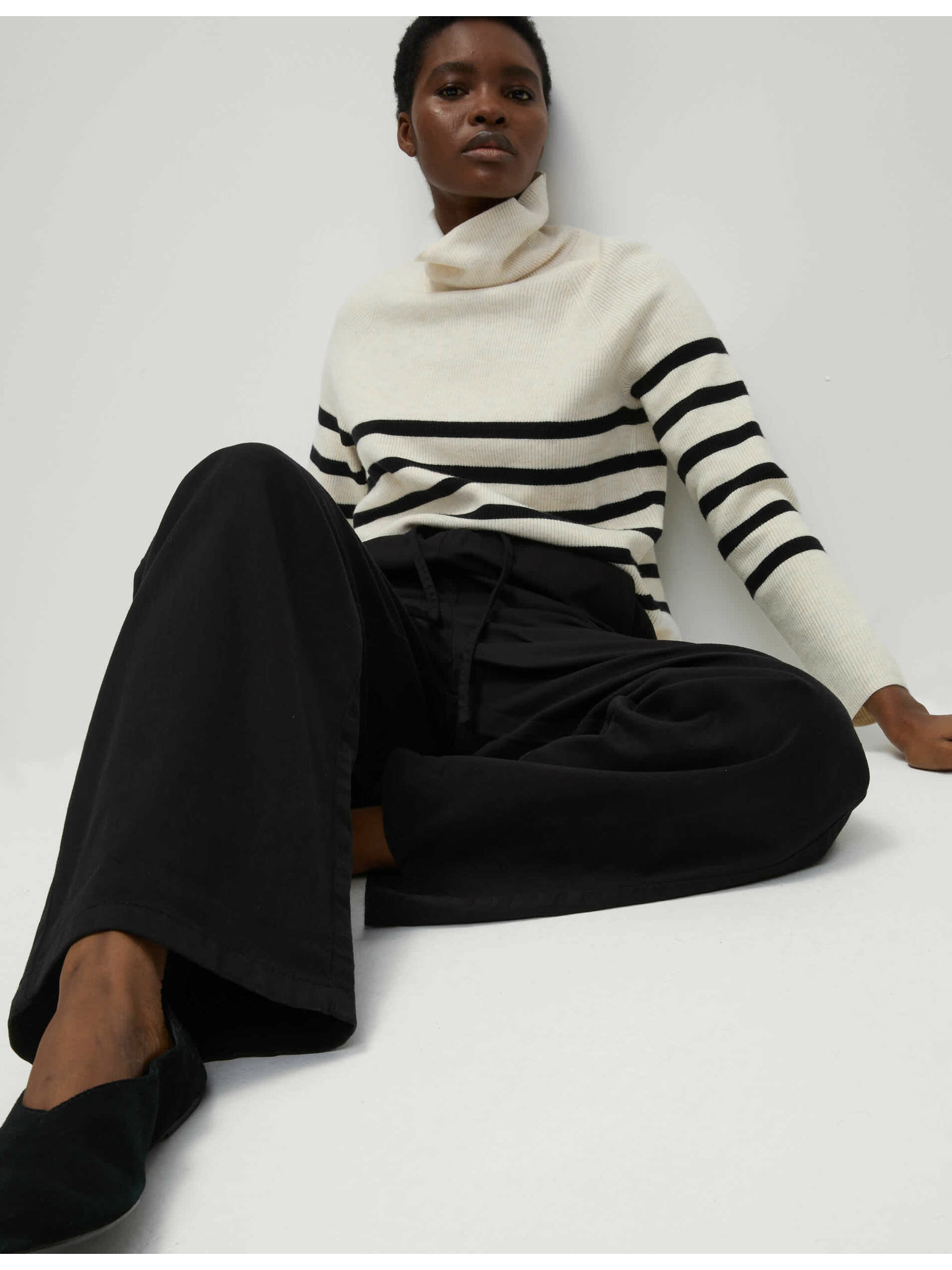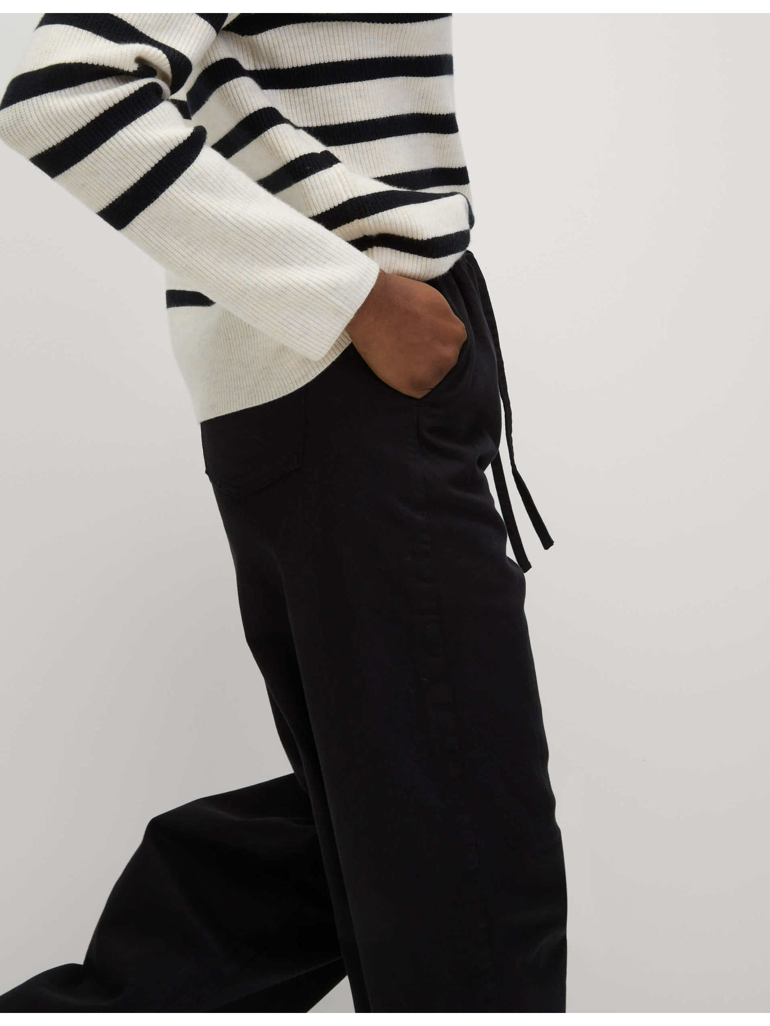 Žerzejske hlače s trakom ob strani in širokimi hlačnicami Marks & Spencer smetanova