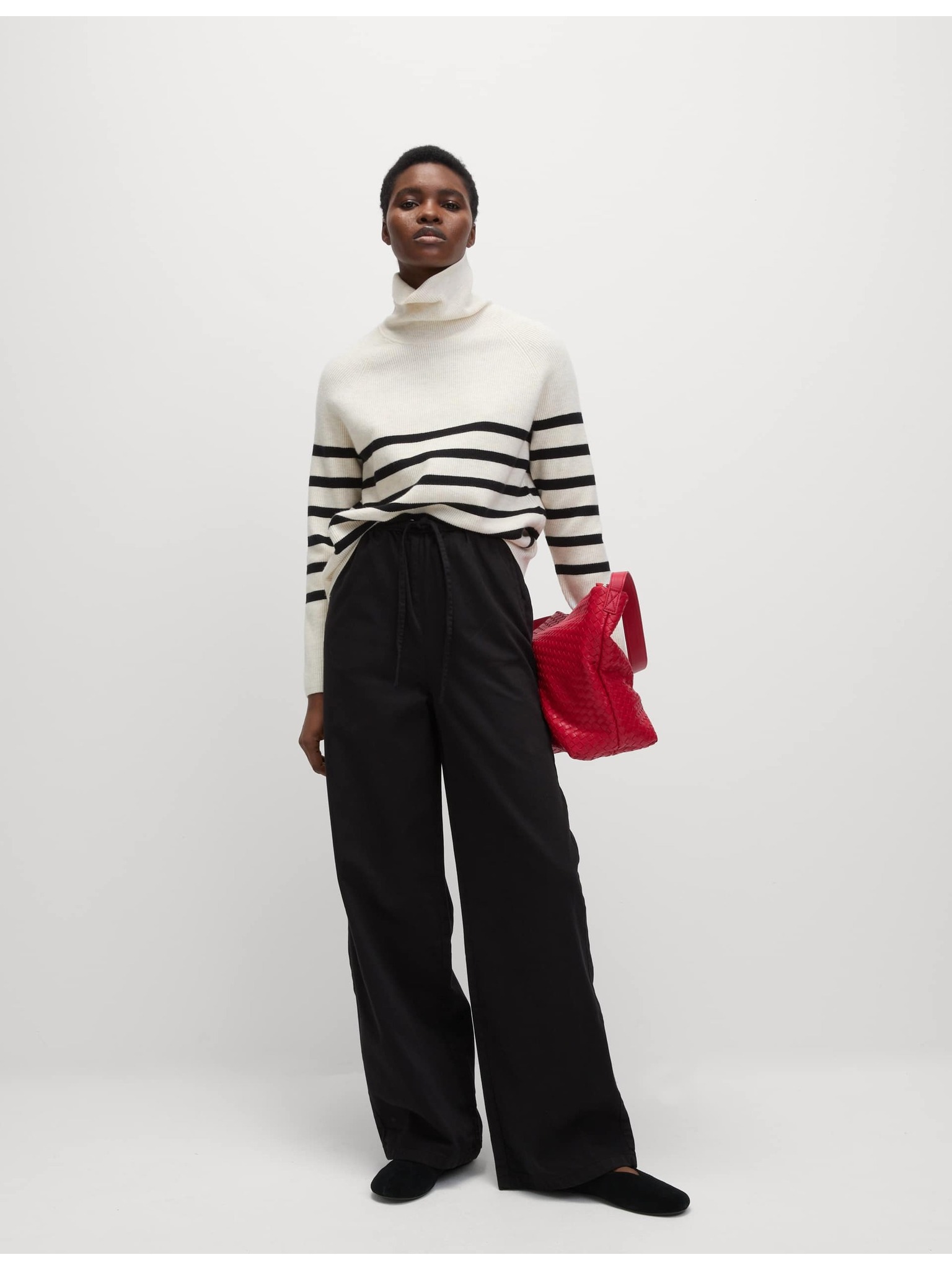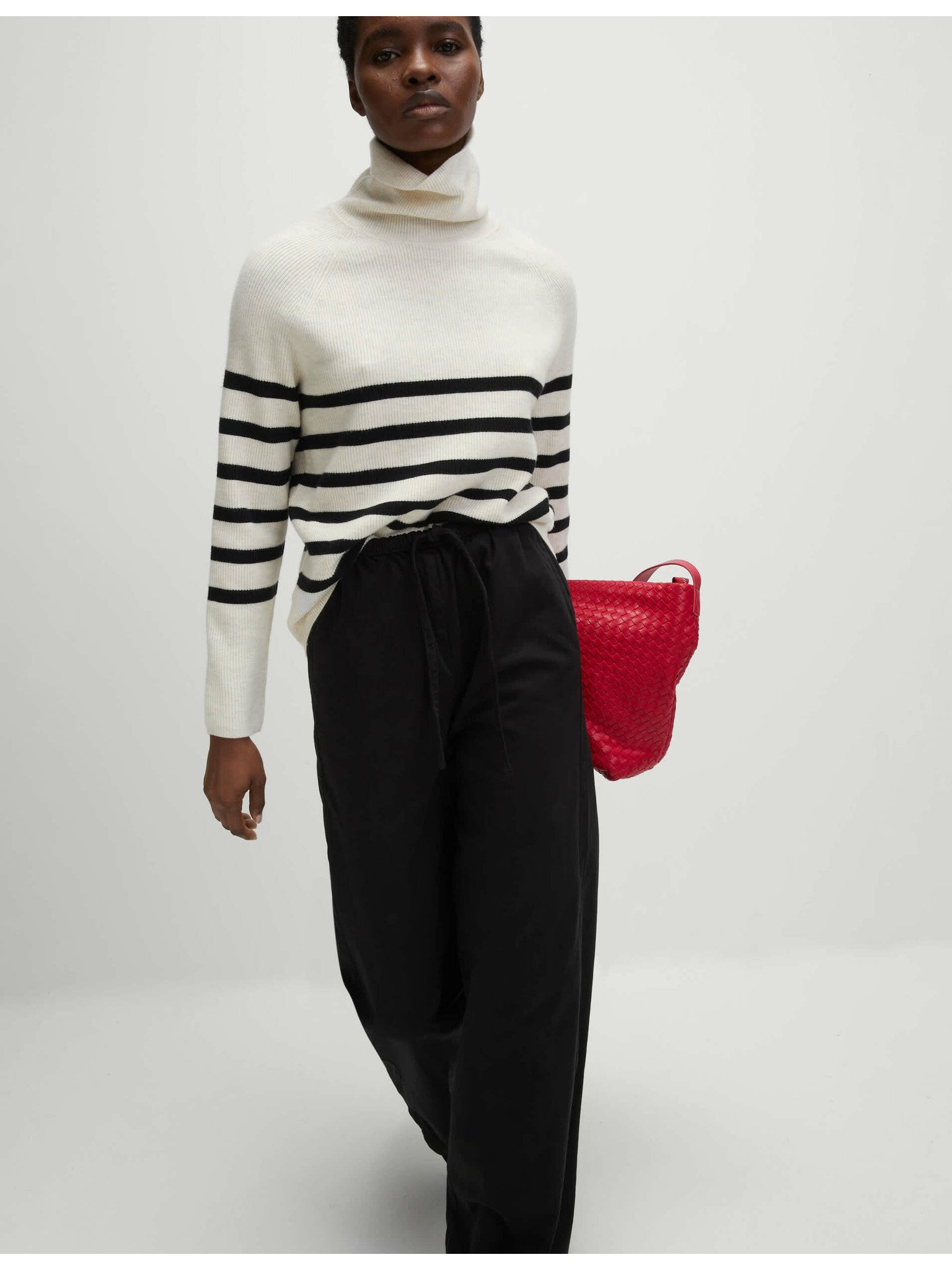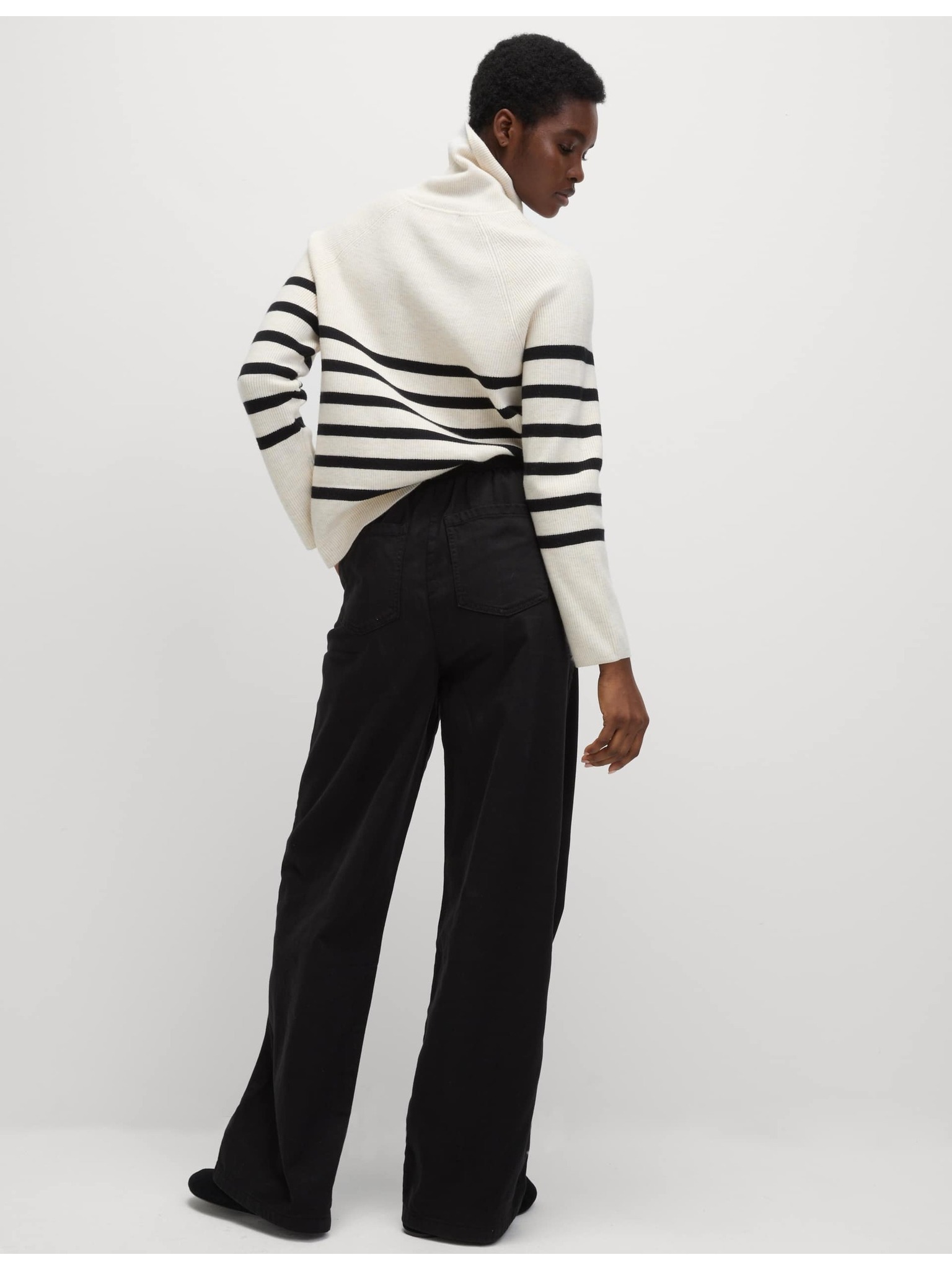Žerzejske hlače s trakom ob strani in širokimi hlačnicami Marks & Spencer smetanova