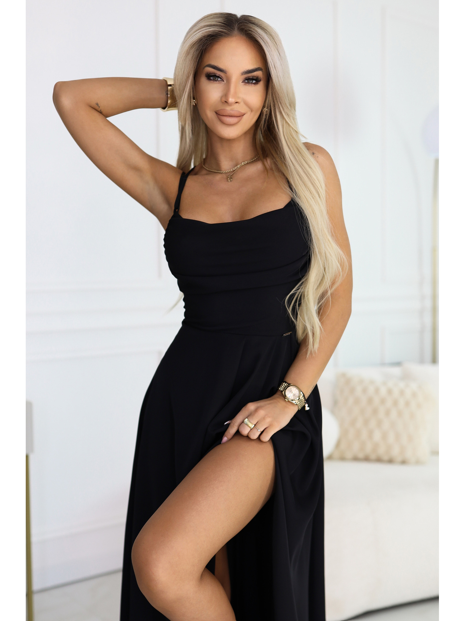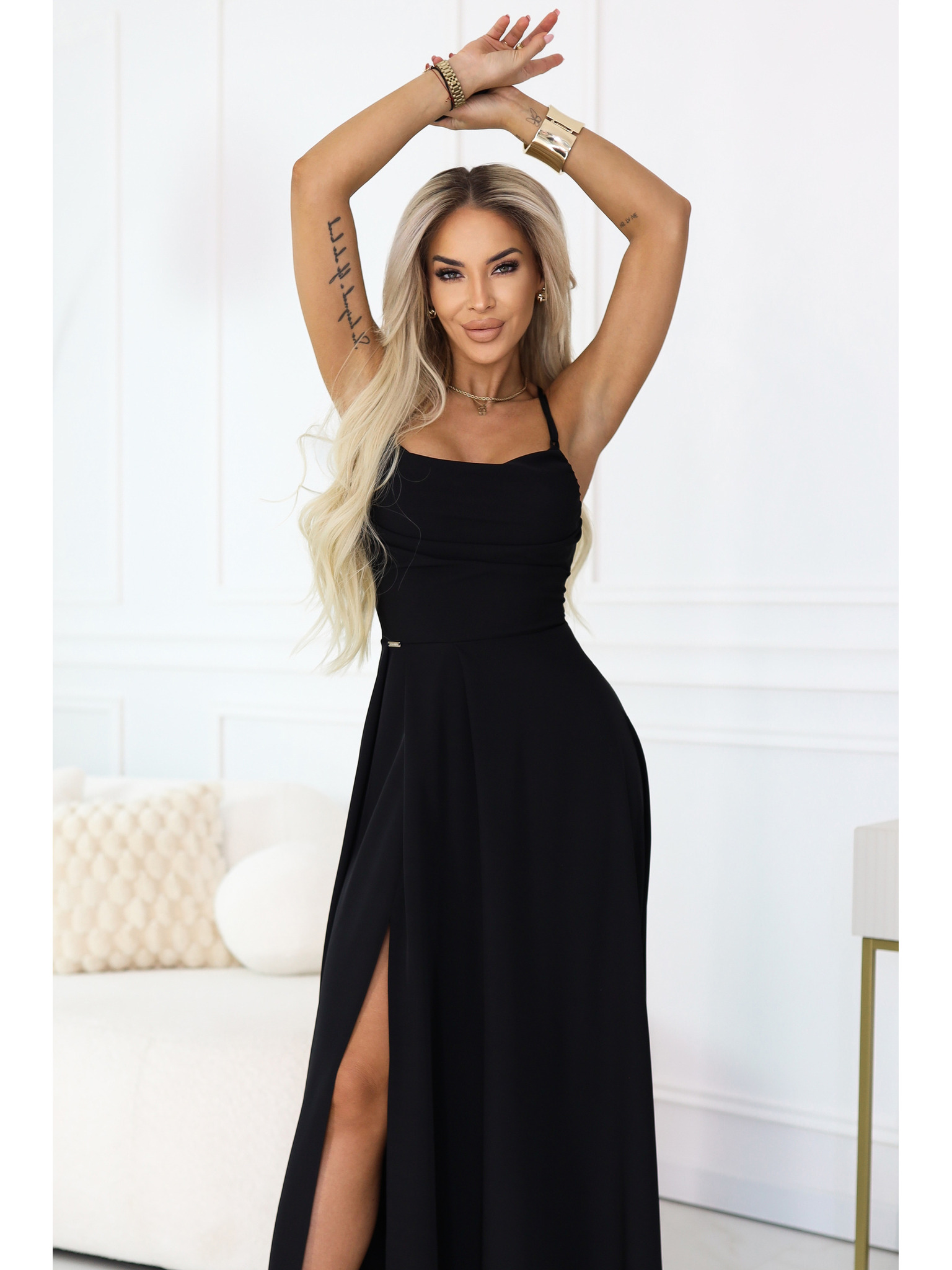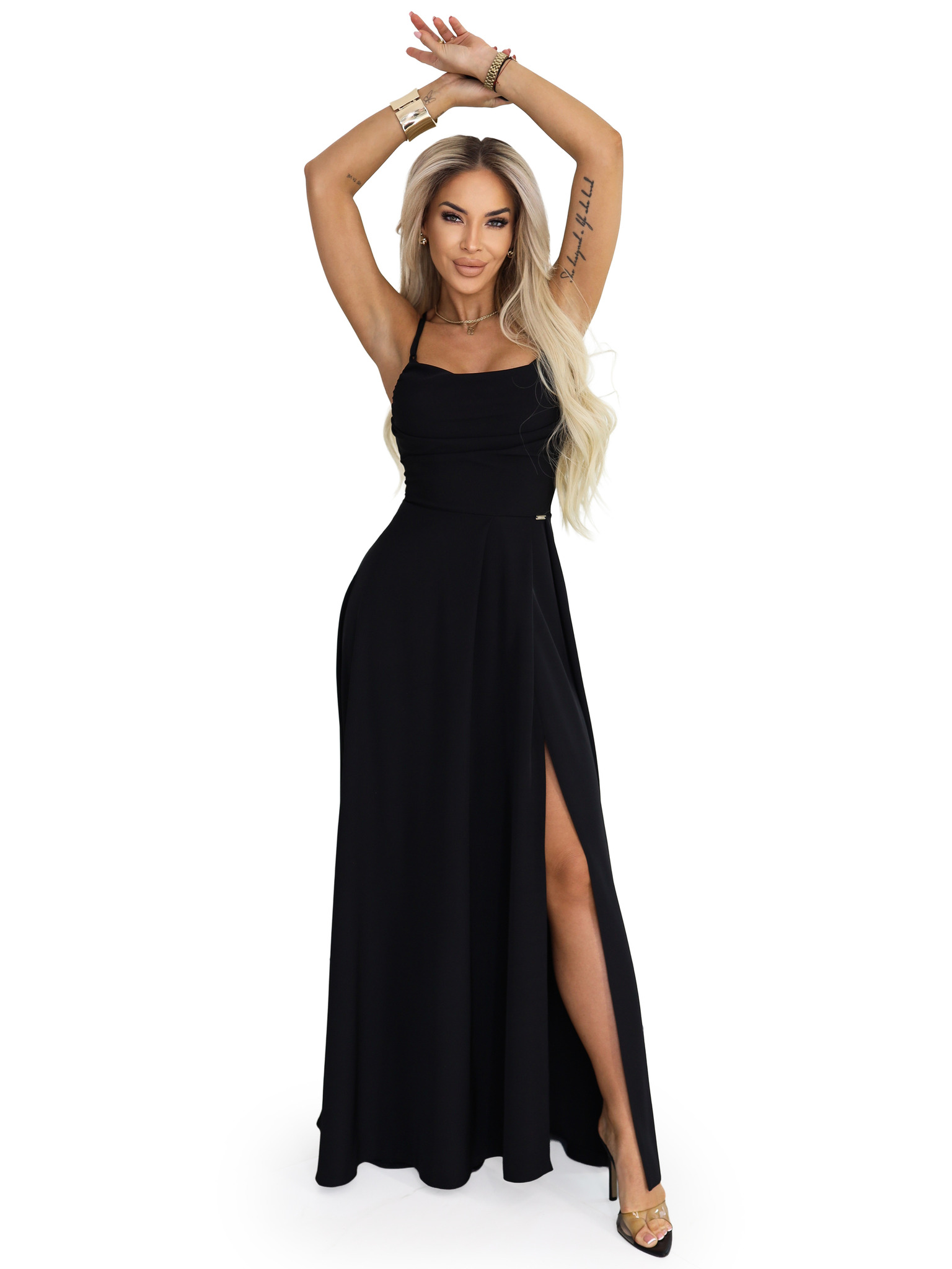Dolge obleke JENNIFER z razporkom - črne