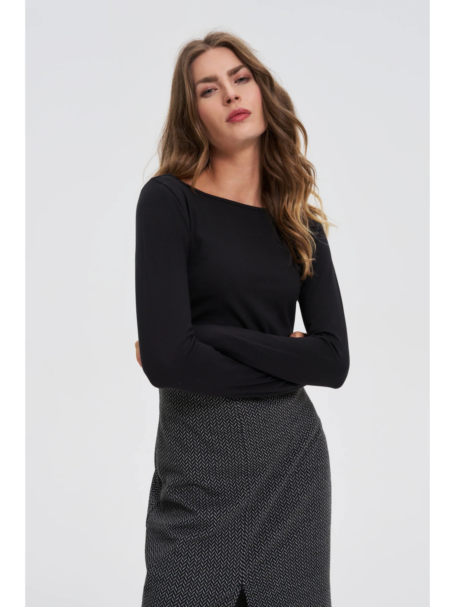 Oprijeta črna bluza z dolgimi rokavi Moodo