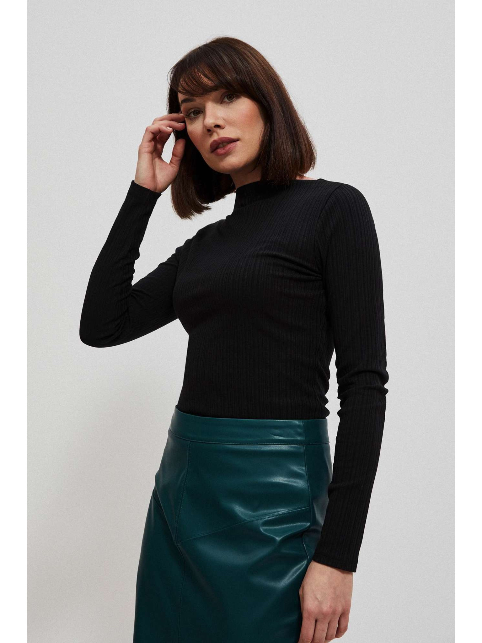 Črn bleščeč top z dolgimi rokavi