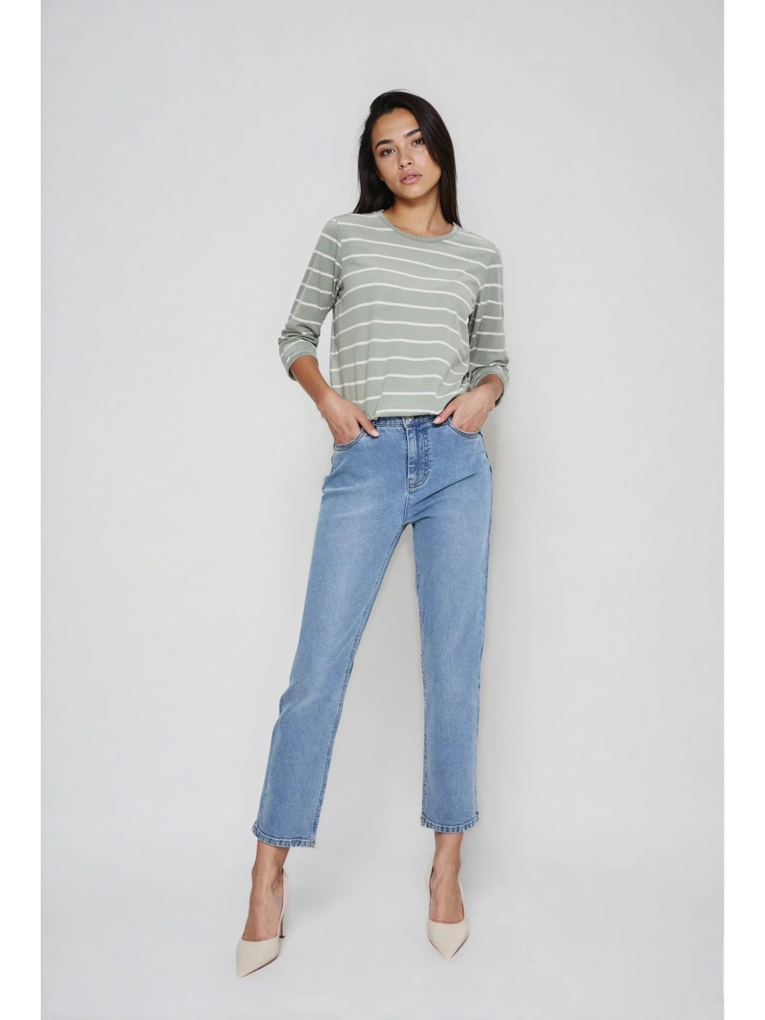 Olivna ženska majica z dolgimi rokavi Moodo