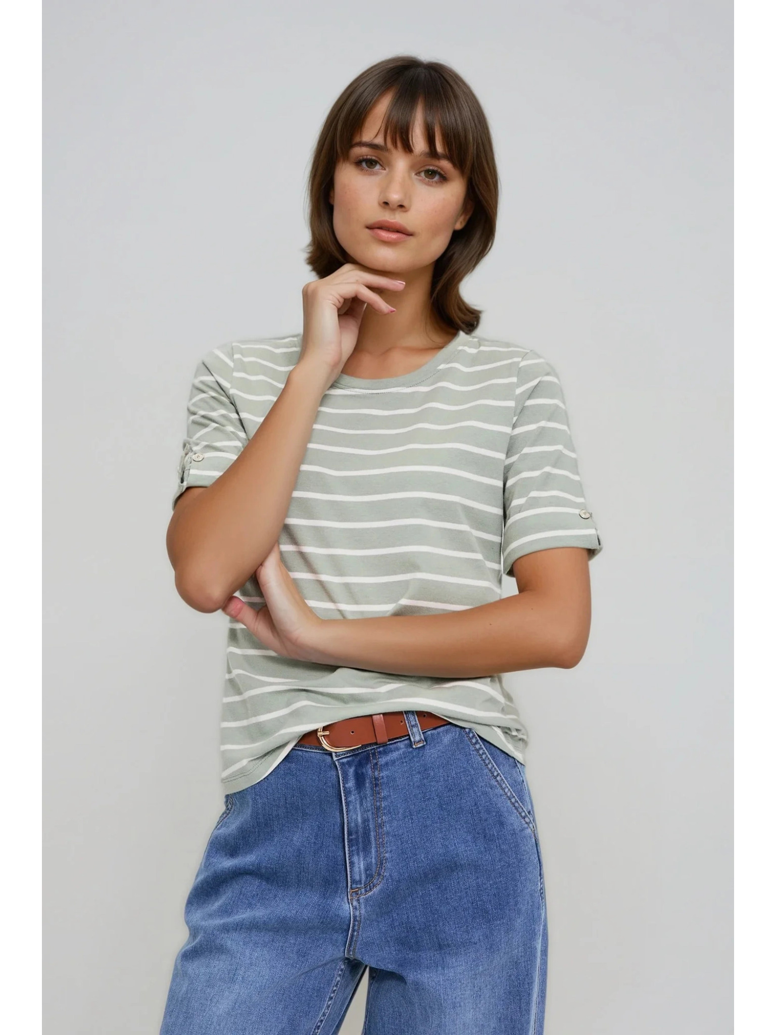 Ženski top z žepom Moodo – olivna zelena
