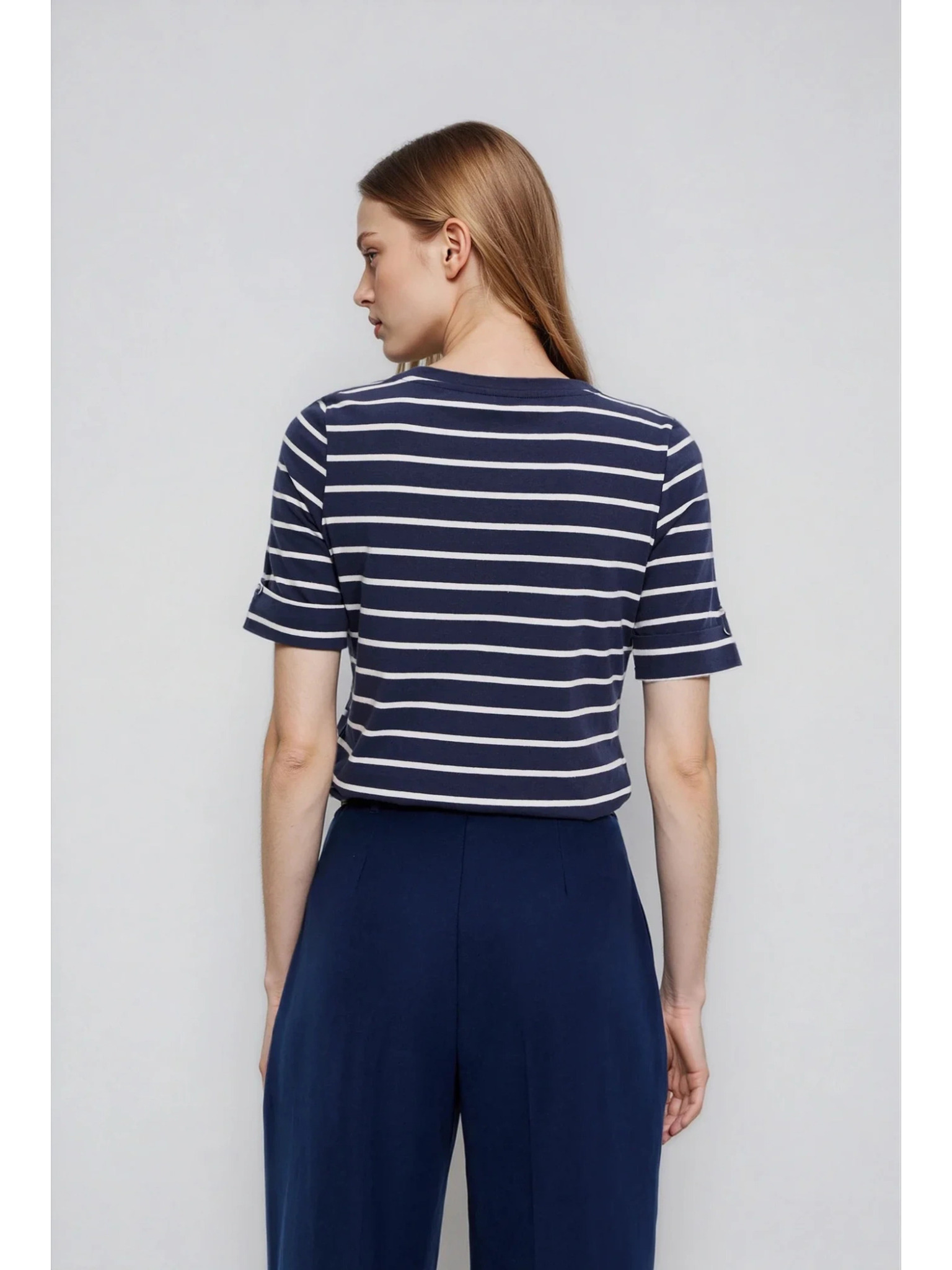 Bombažna prugasta majica temno modra Moodo