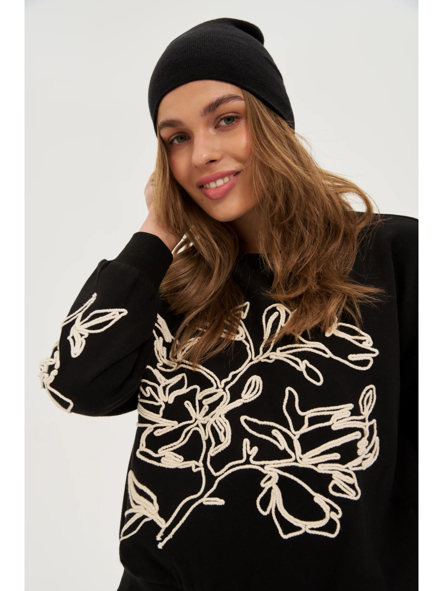 Kapa z cofom in biseri črne barve Moodo