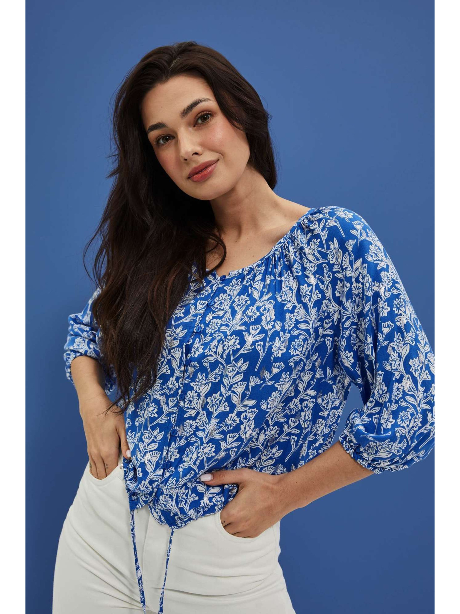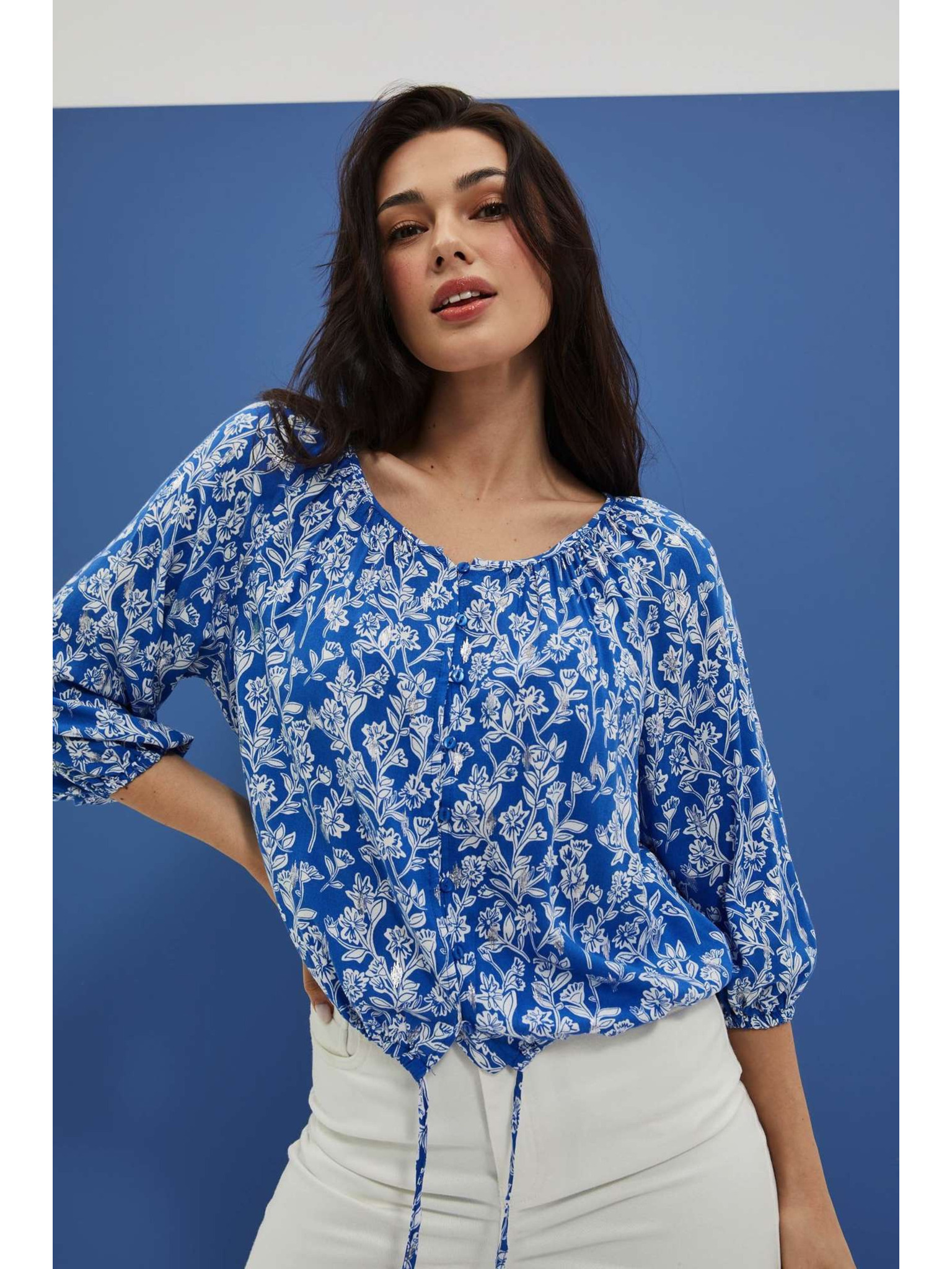 Vzorčasta srajca z gumbi modra Moodo