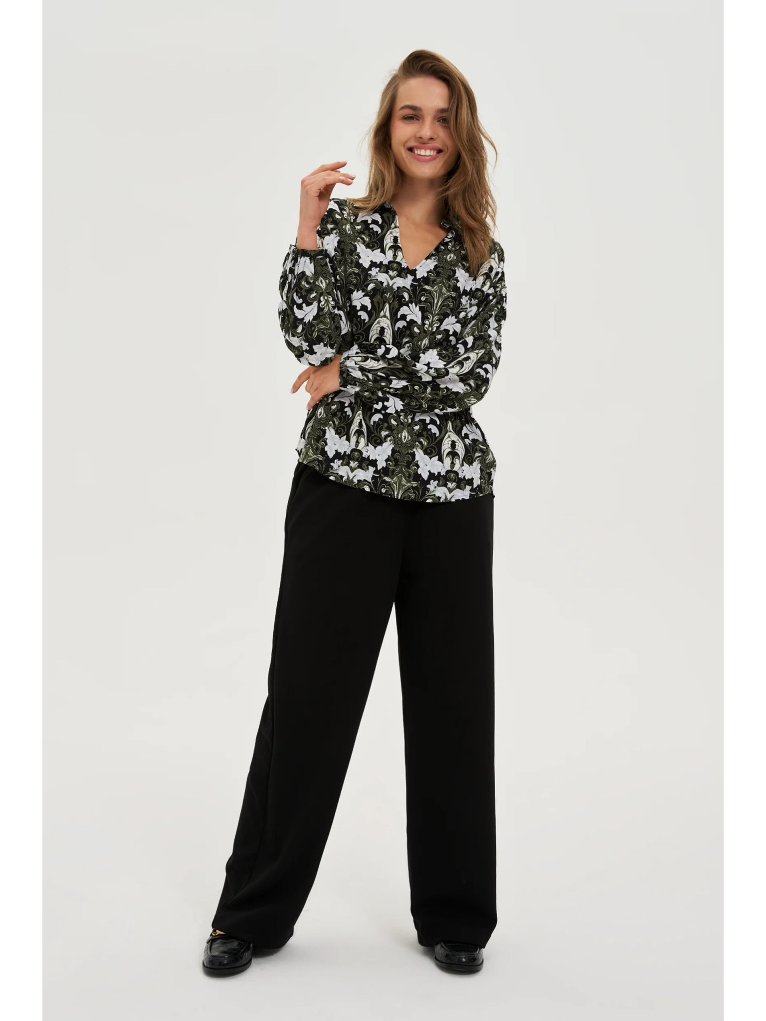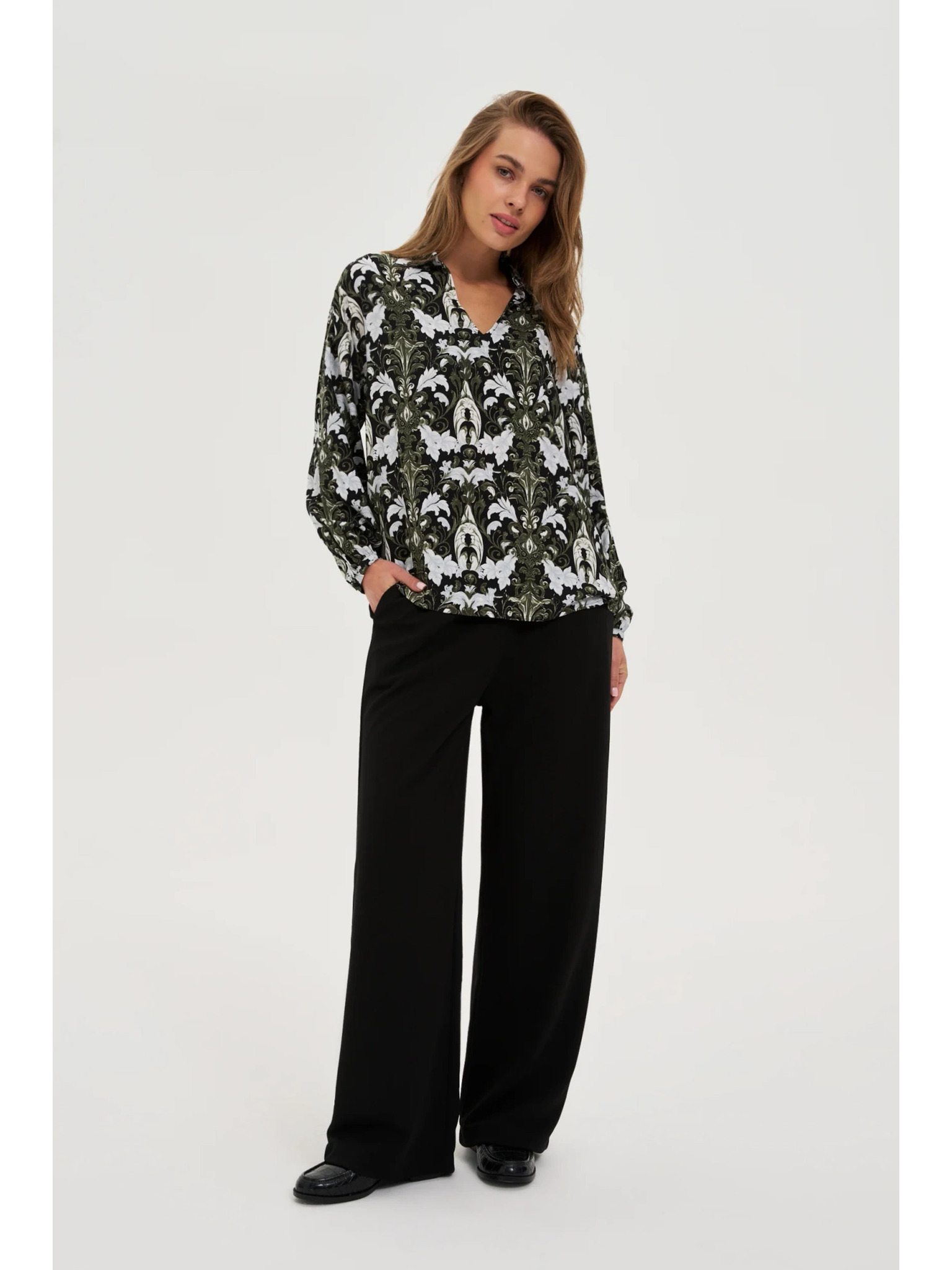 Temno olivna viskozna srajca Moodo