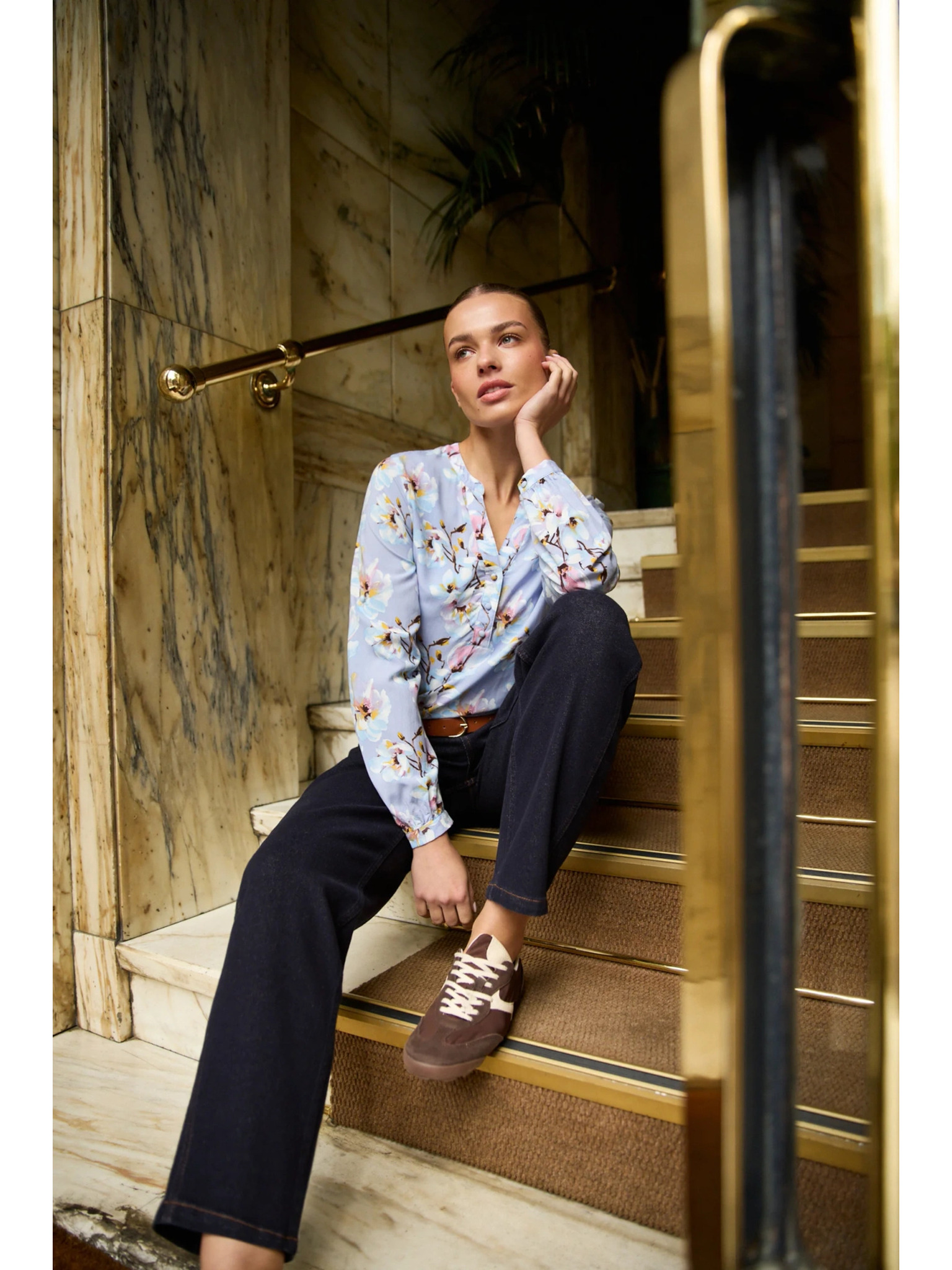 Svetlo modra cvetlična srajca Moodo