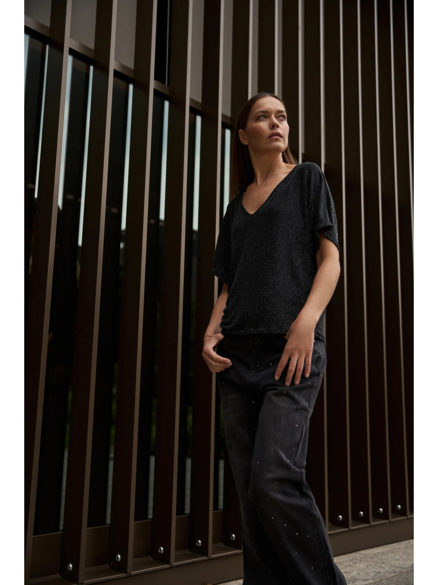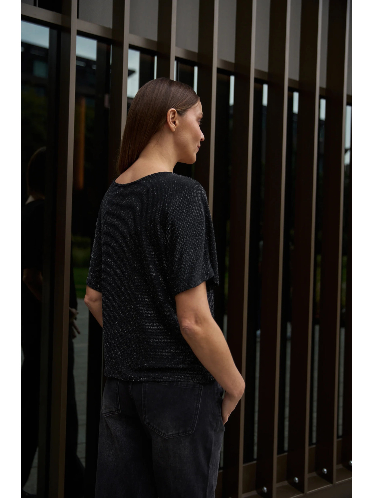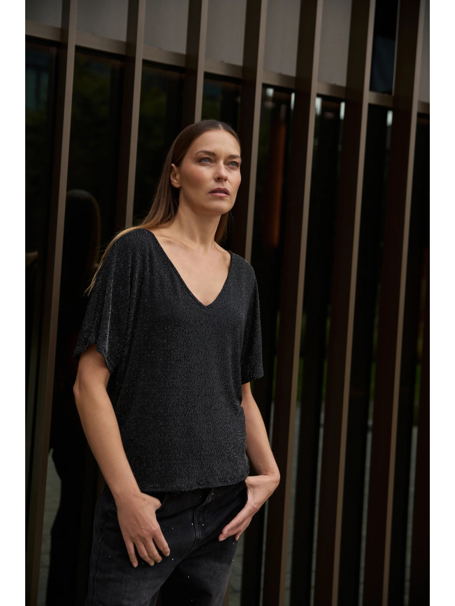 Črna ohlapna bluza s kratkimi rokavi