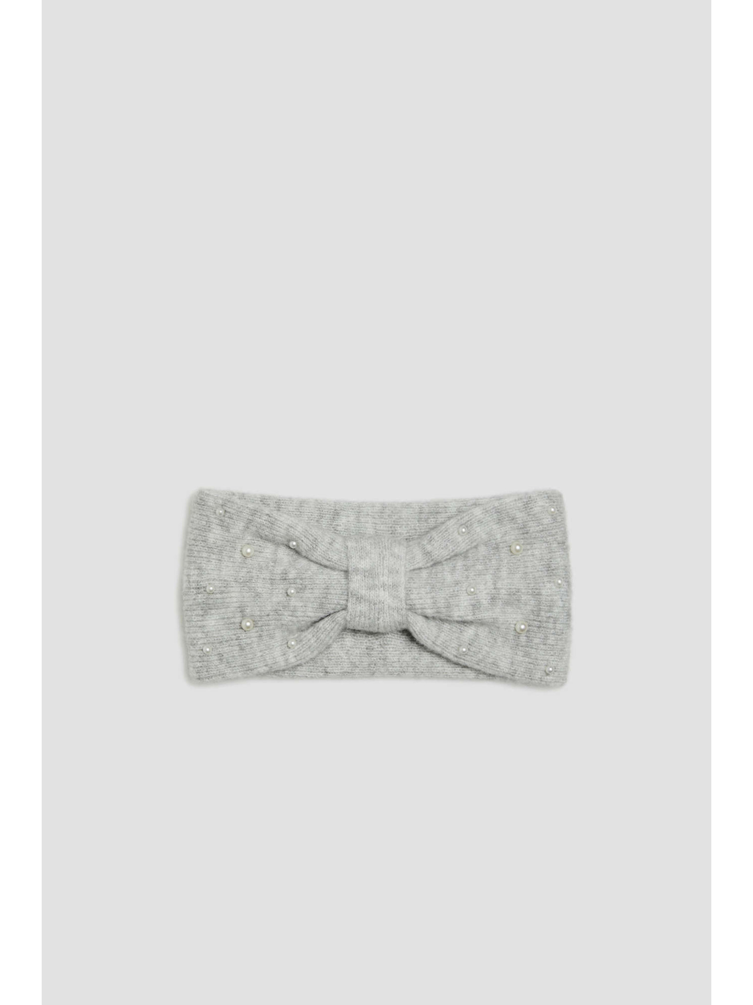 Topla pletena naglavna trakica sive barve Moodo