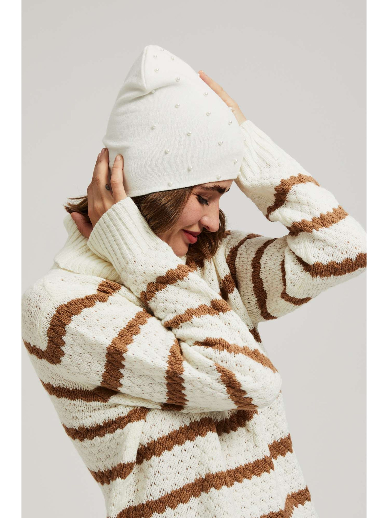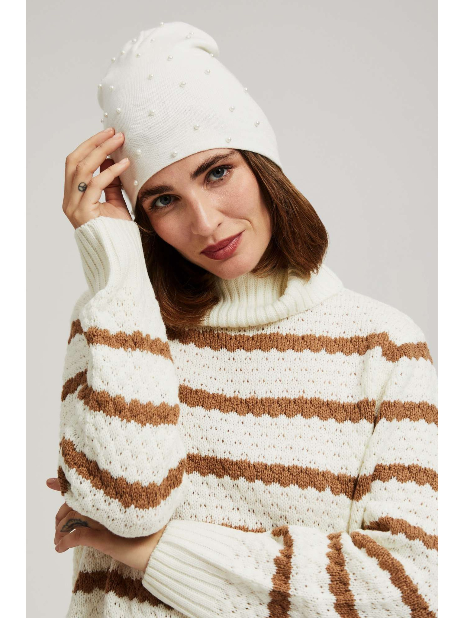 Zimska kapa bele barve Moodo