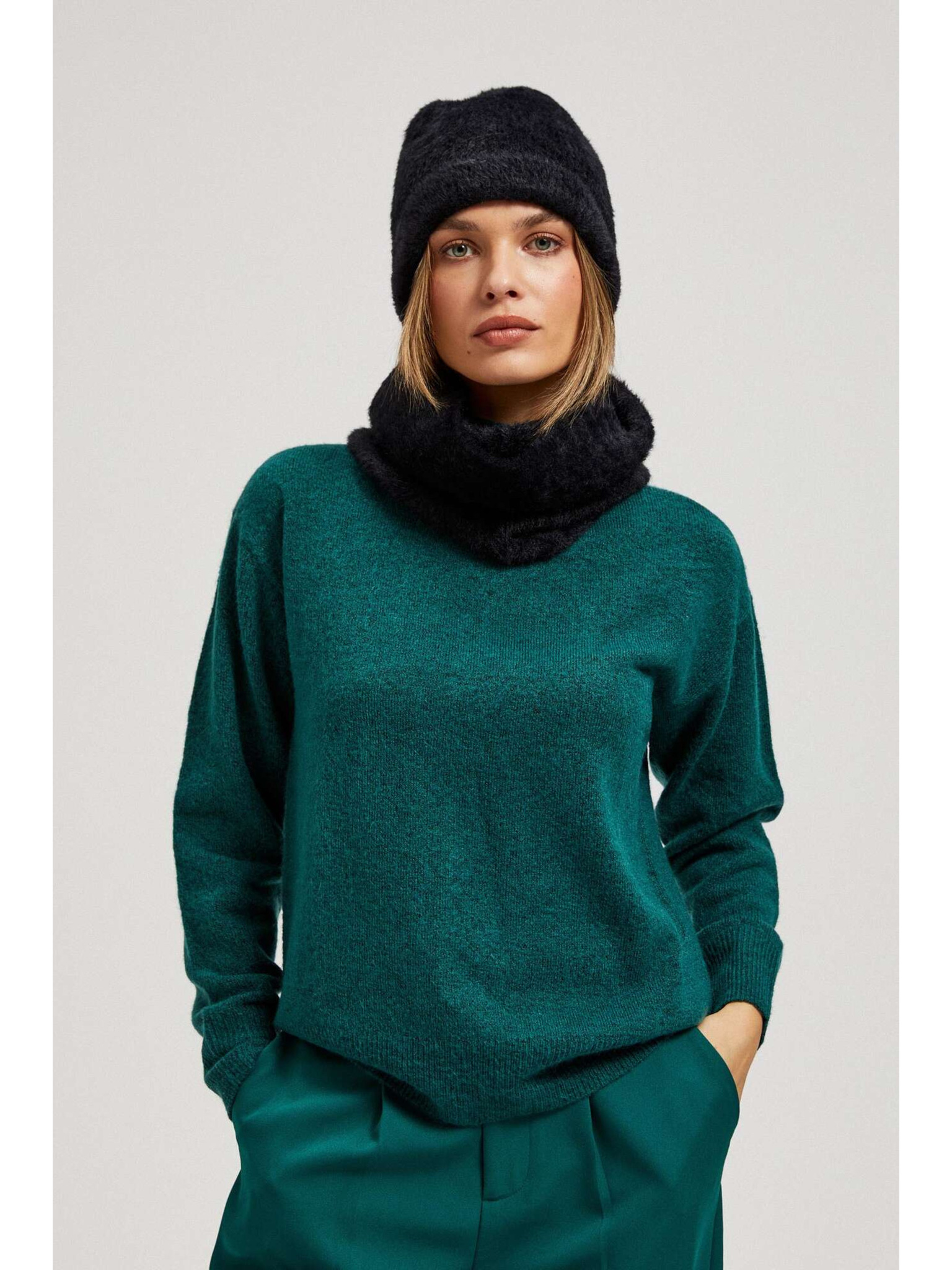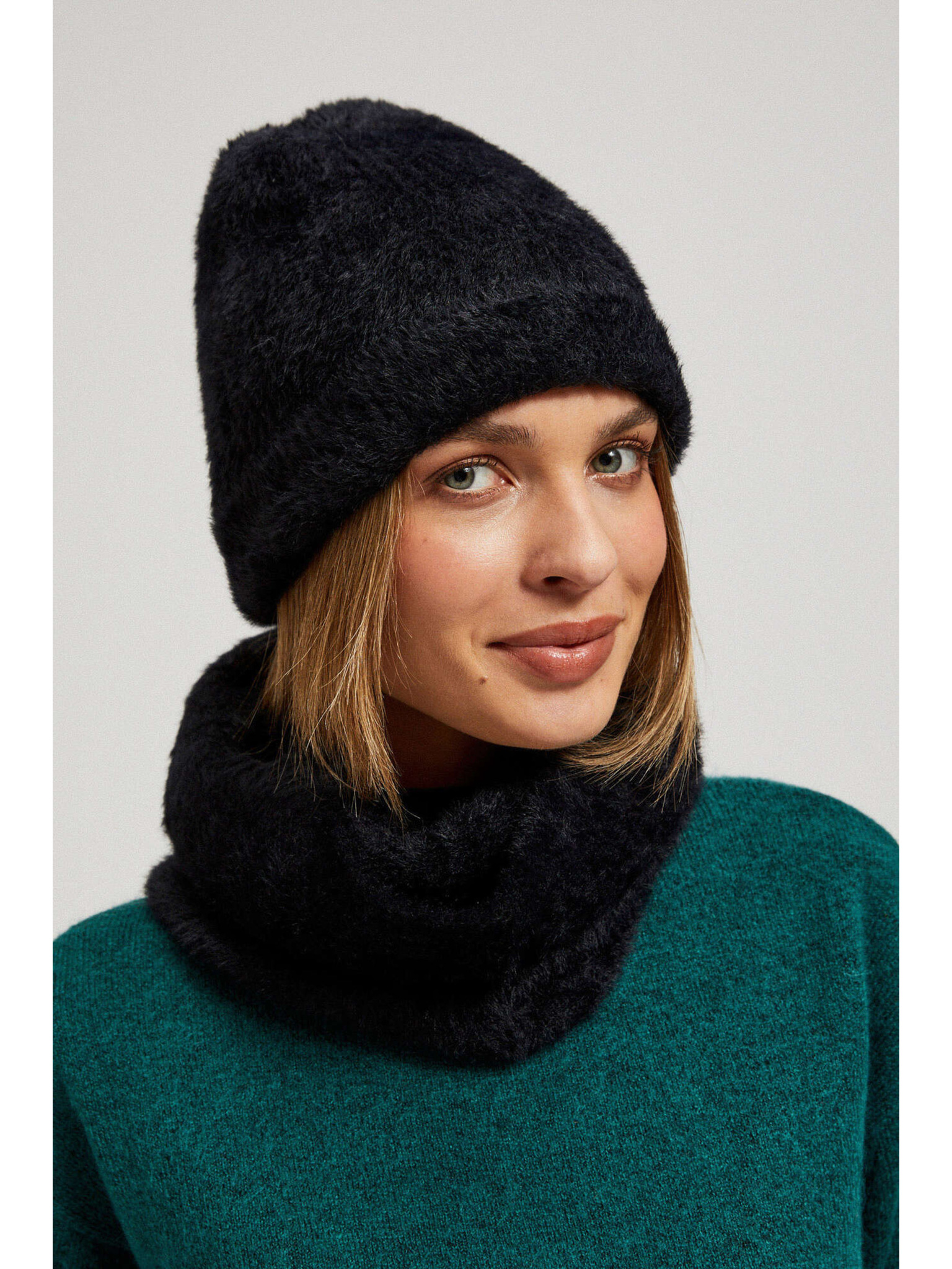 Pletena črna kapa Moodo