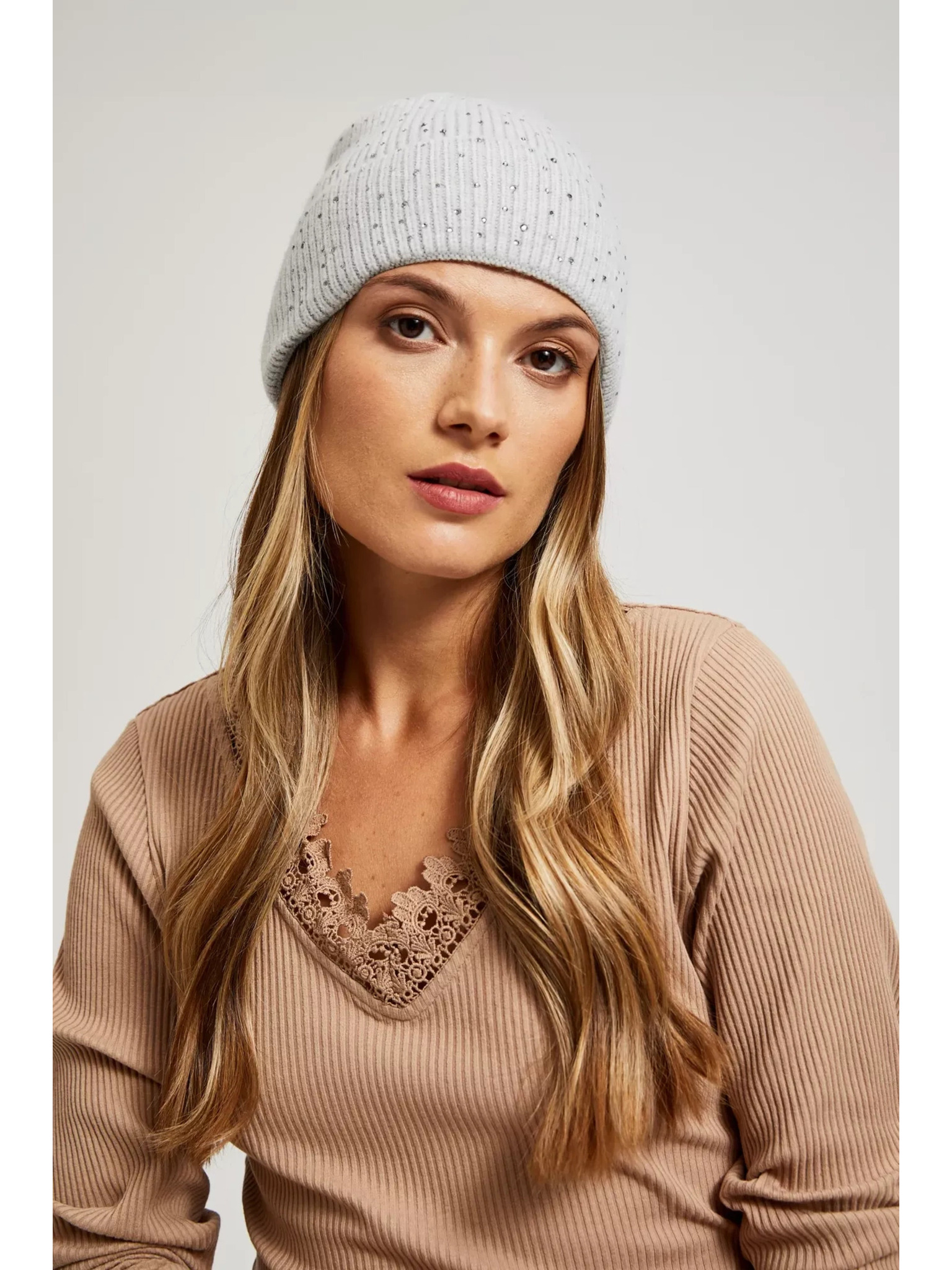 Rebrasta kapa z biseri siva Moodo