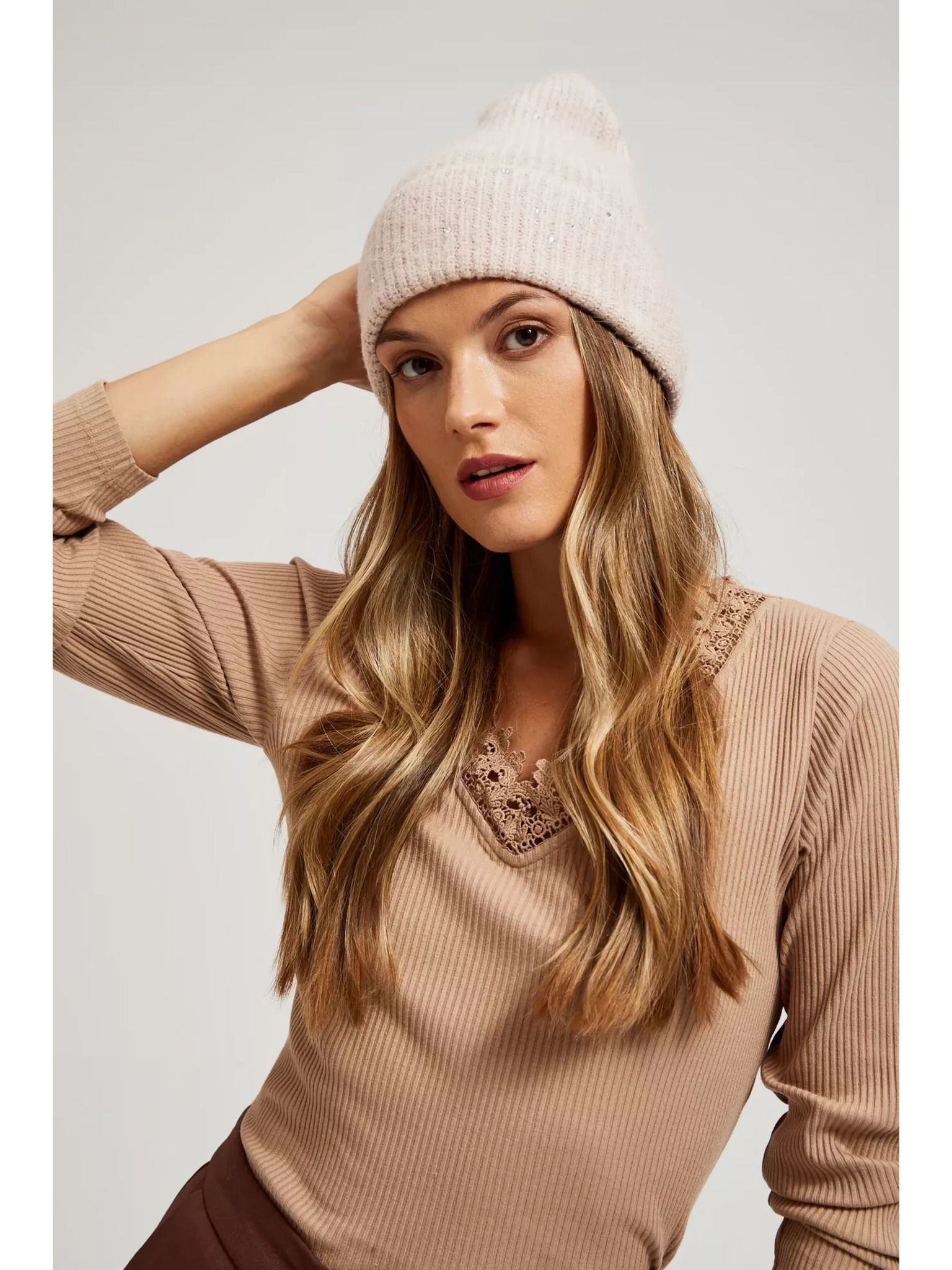 Rebrasta kapa bež Moodo