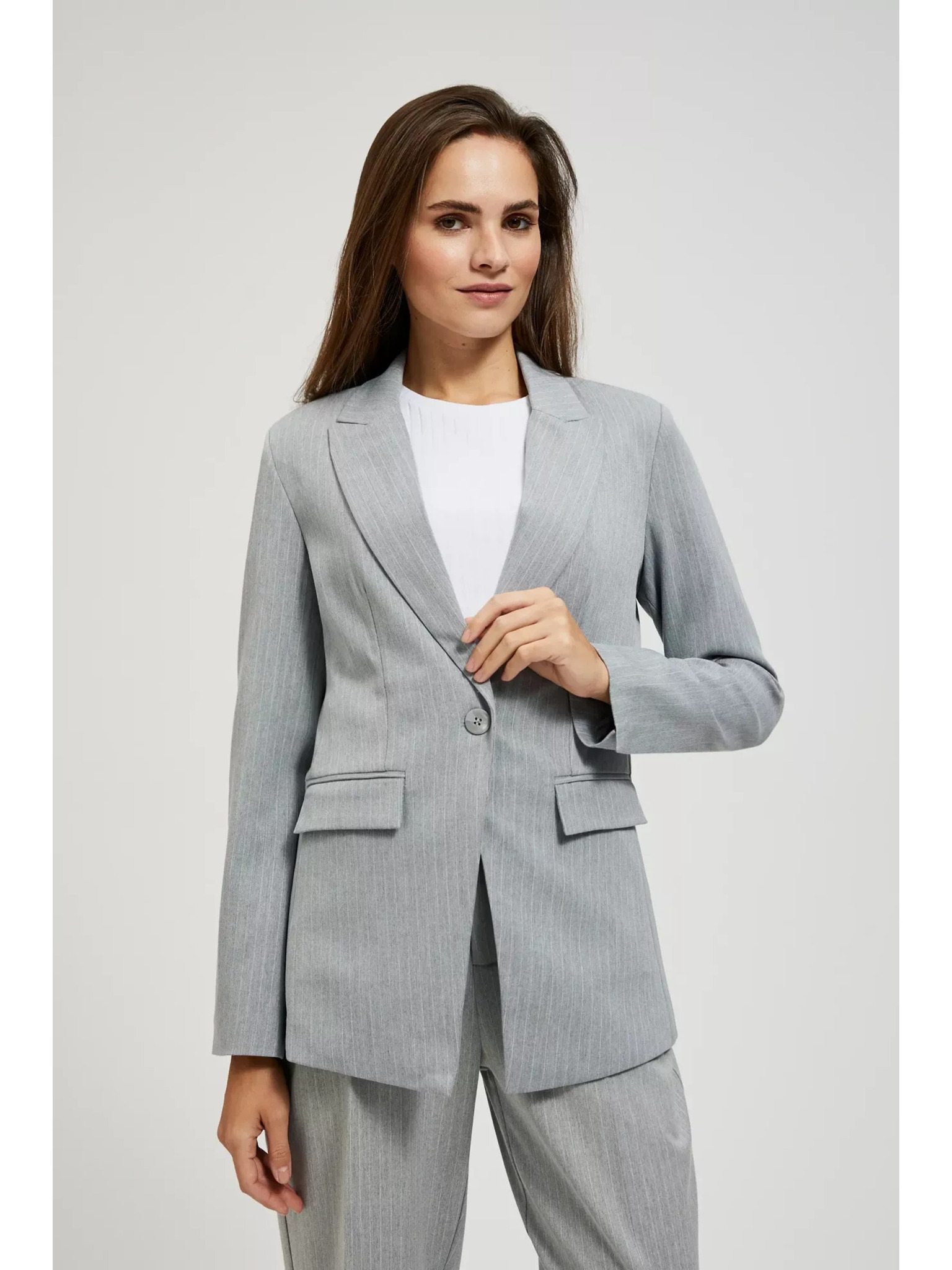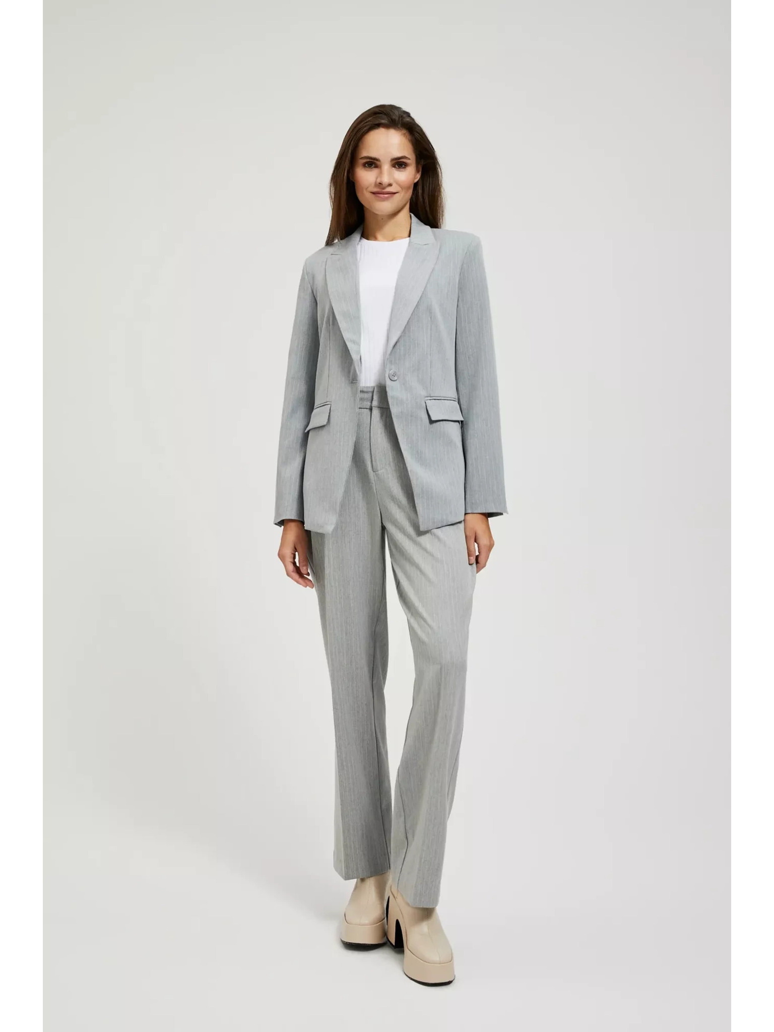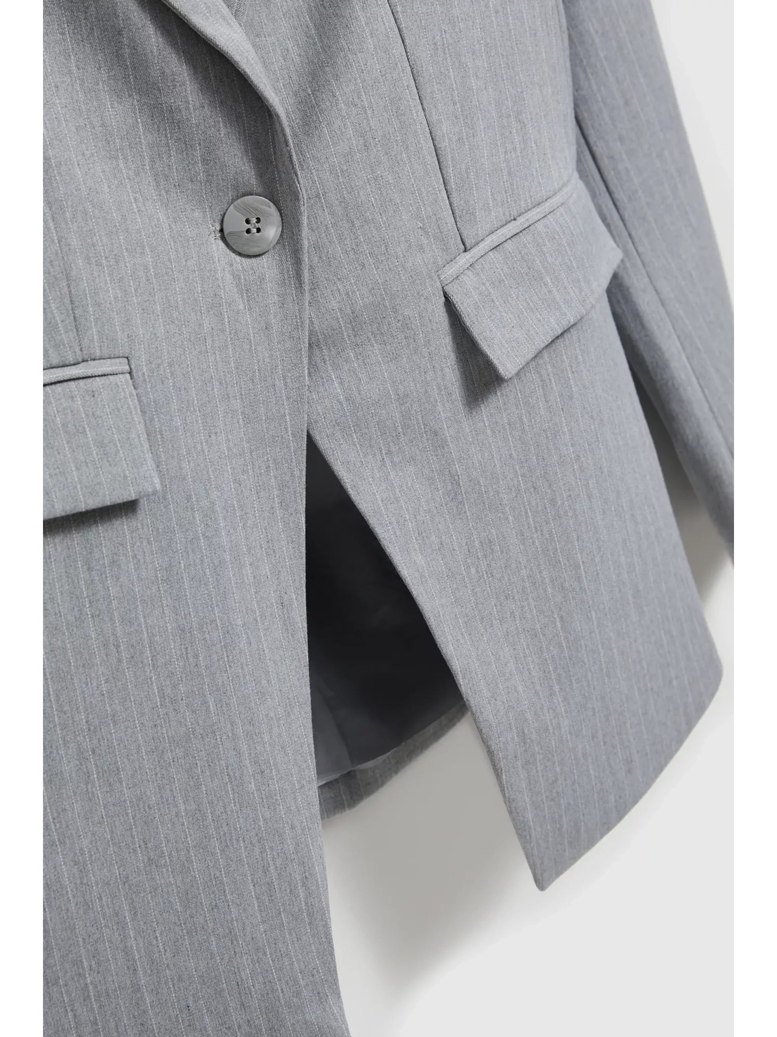 Siv enostranski suknjič z finimi črtami Moodo