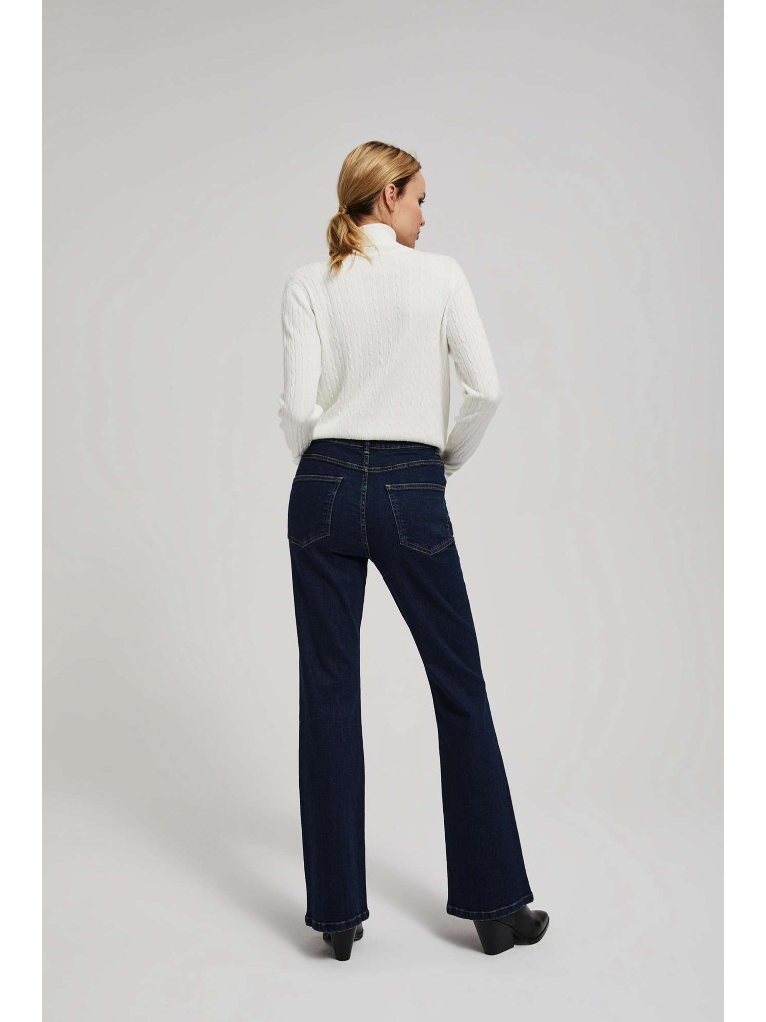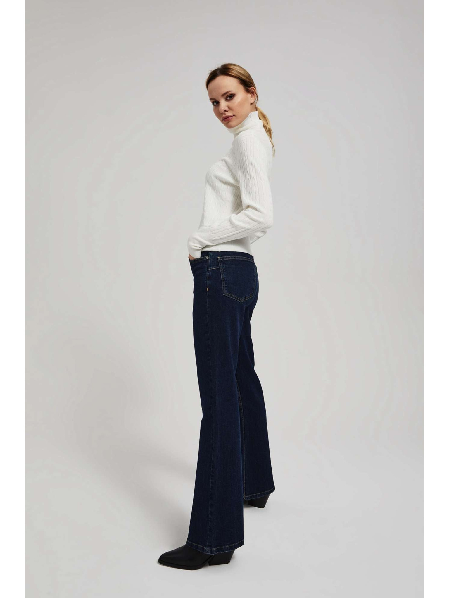 Kremne ženske zvonaste kavbojke