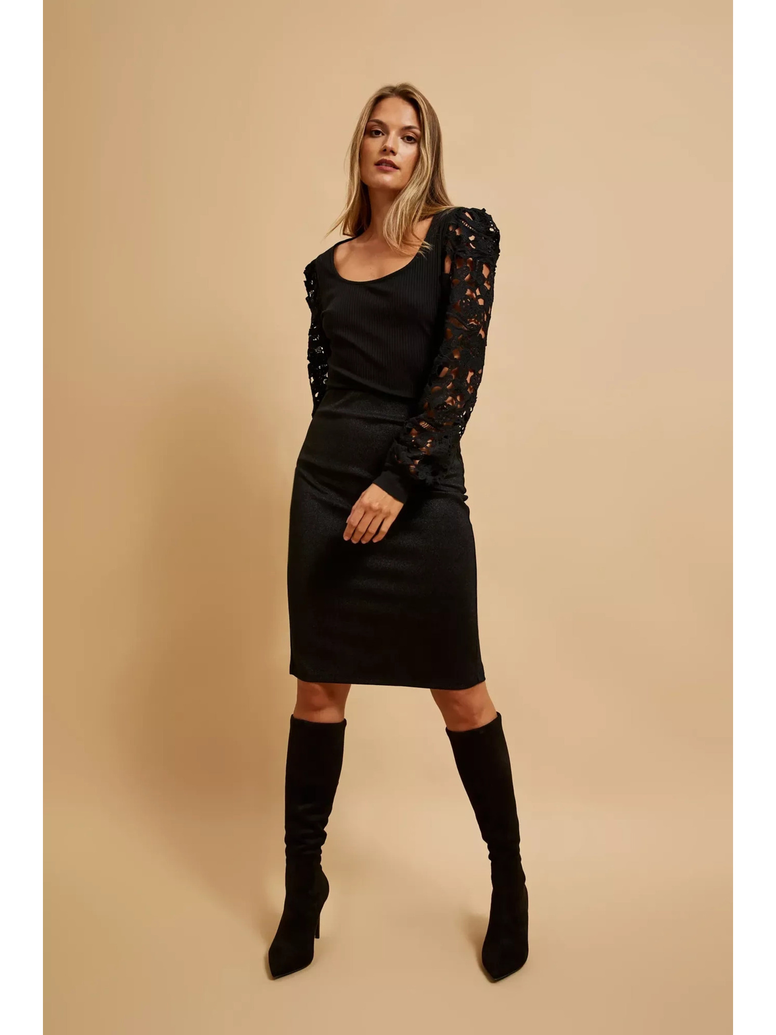 Vzorčast top z visokim ovratnikom Moodo