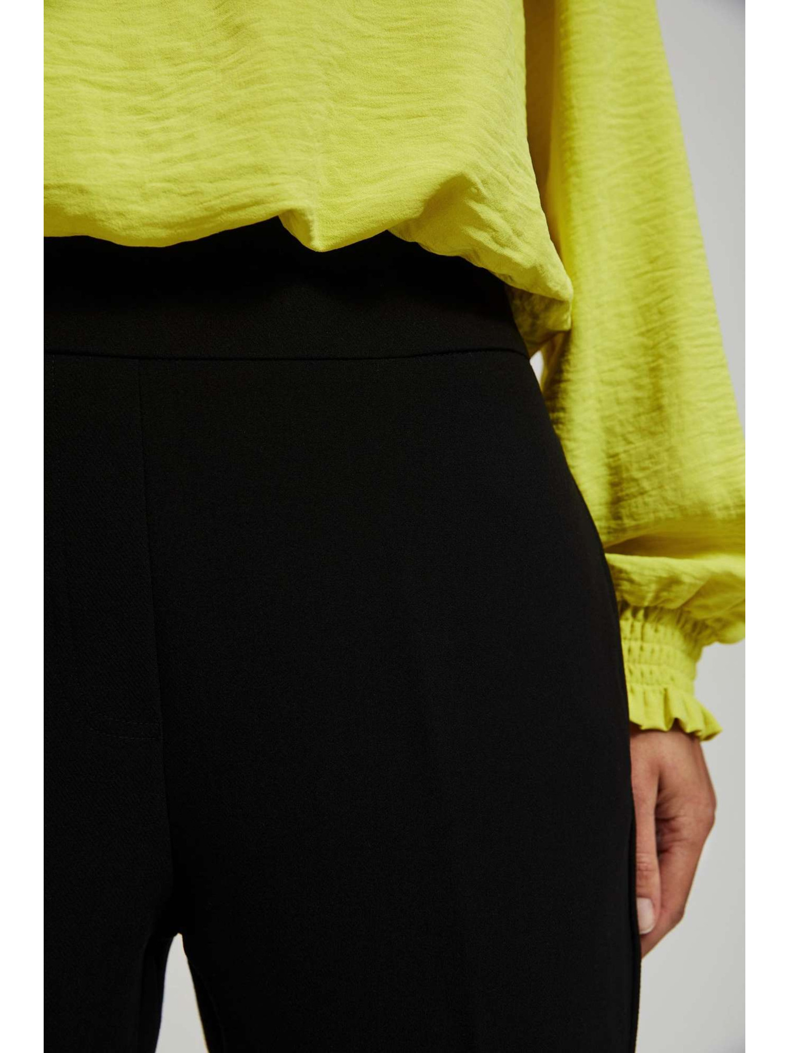 Črne hlače s strukturo in 7/8 hlačnicami Moodo