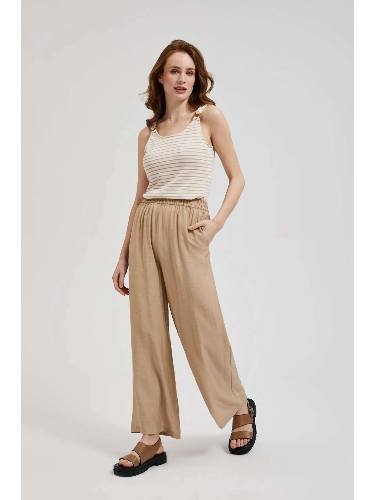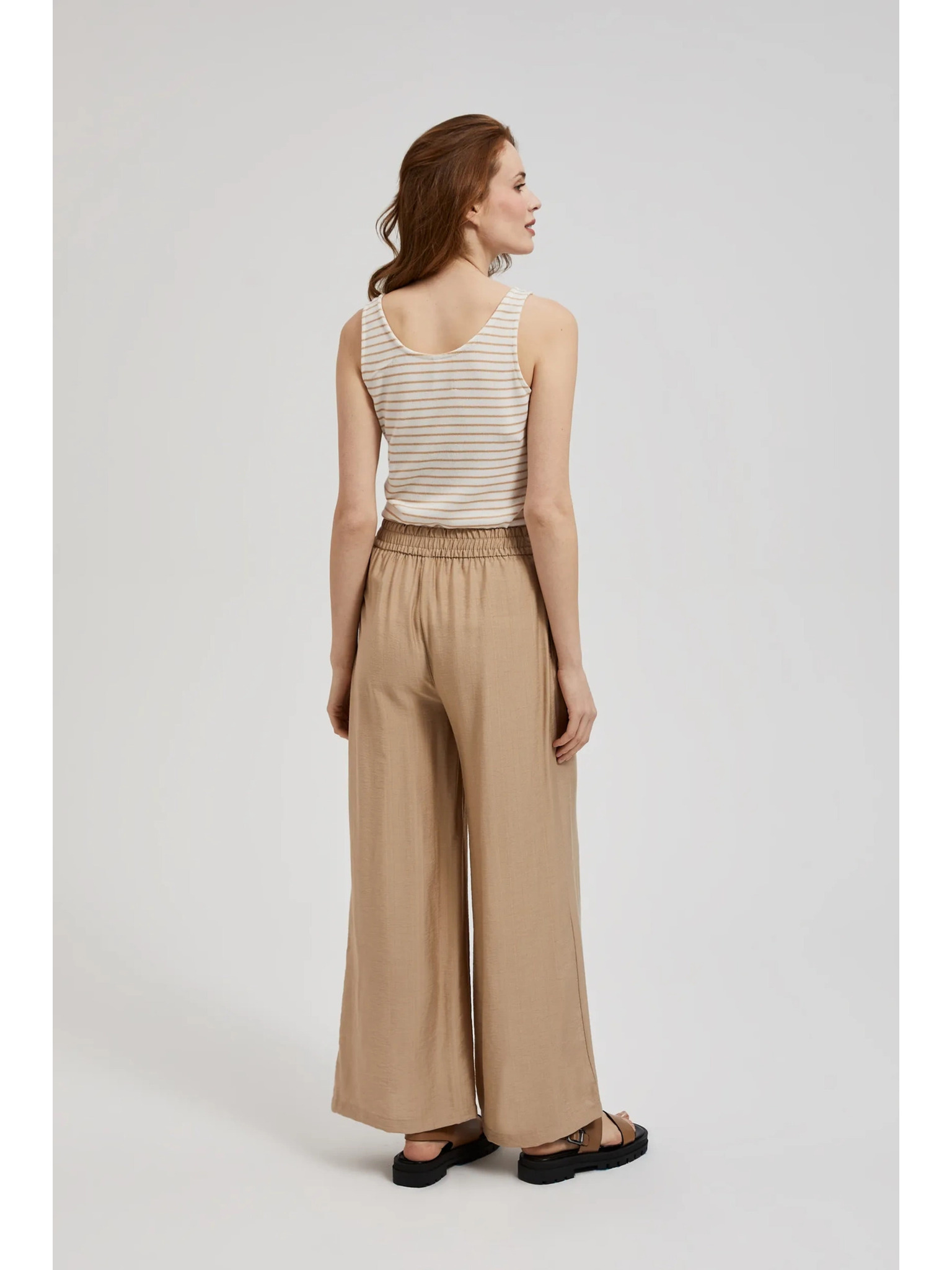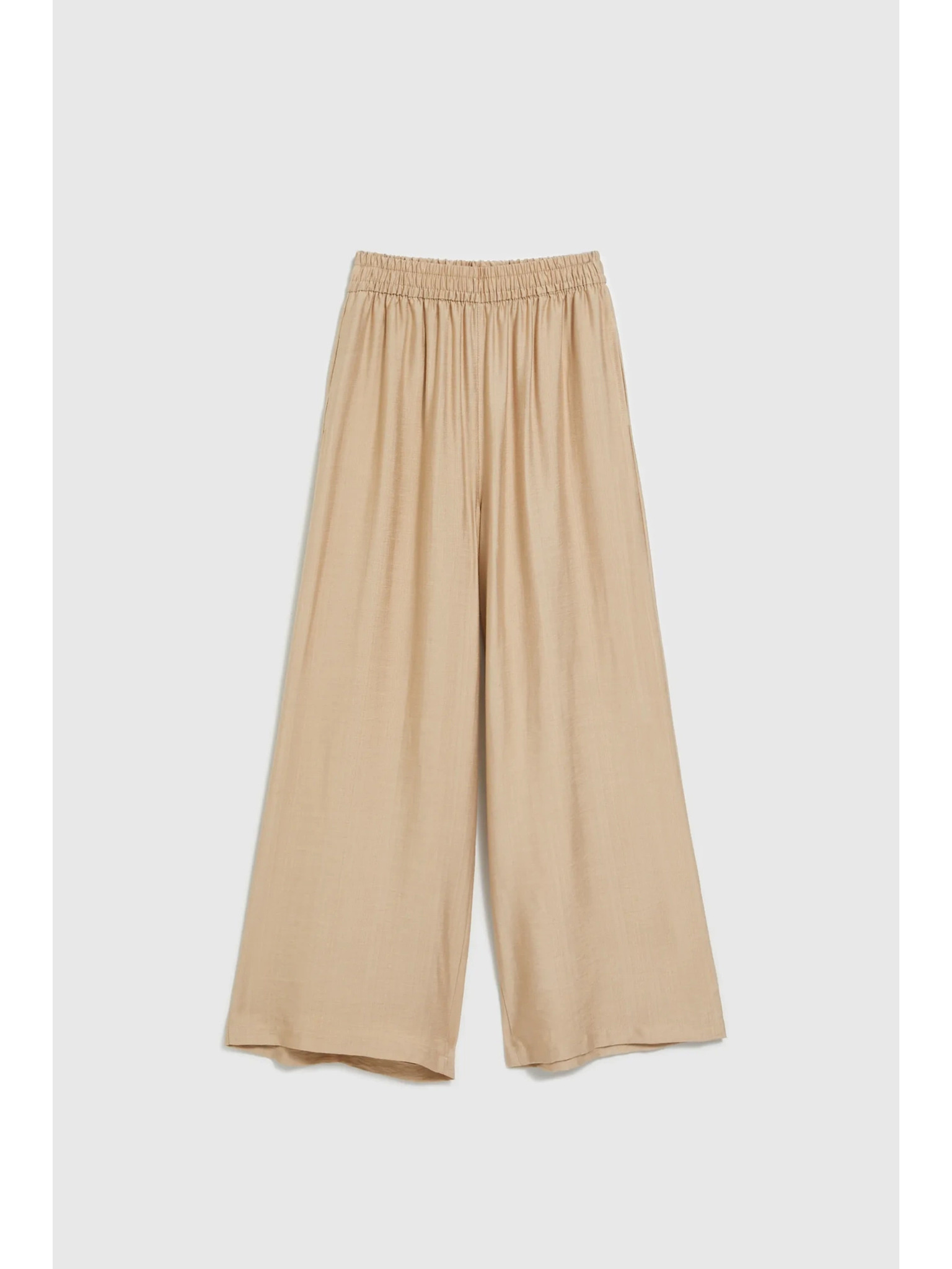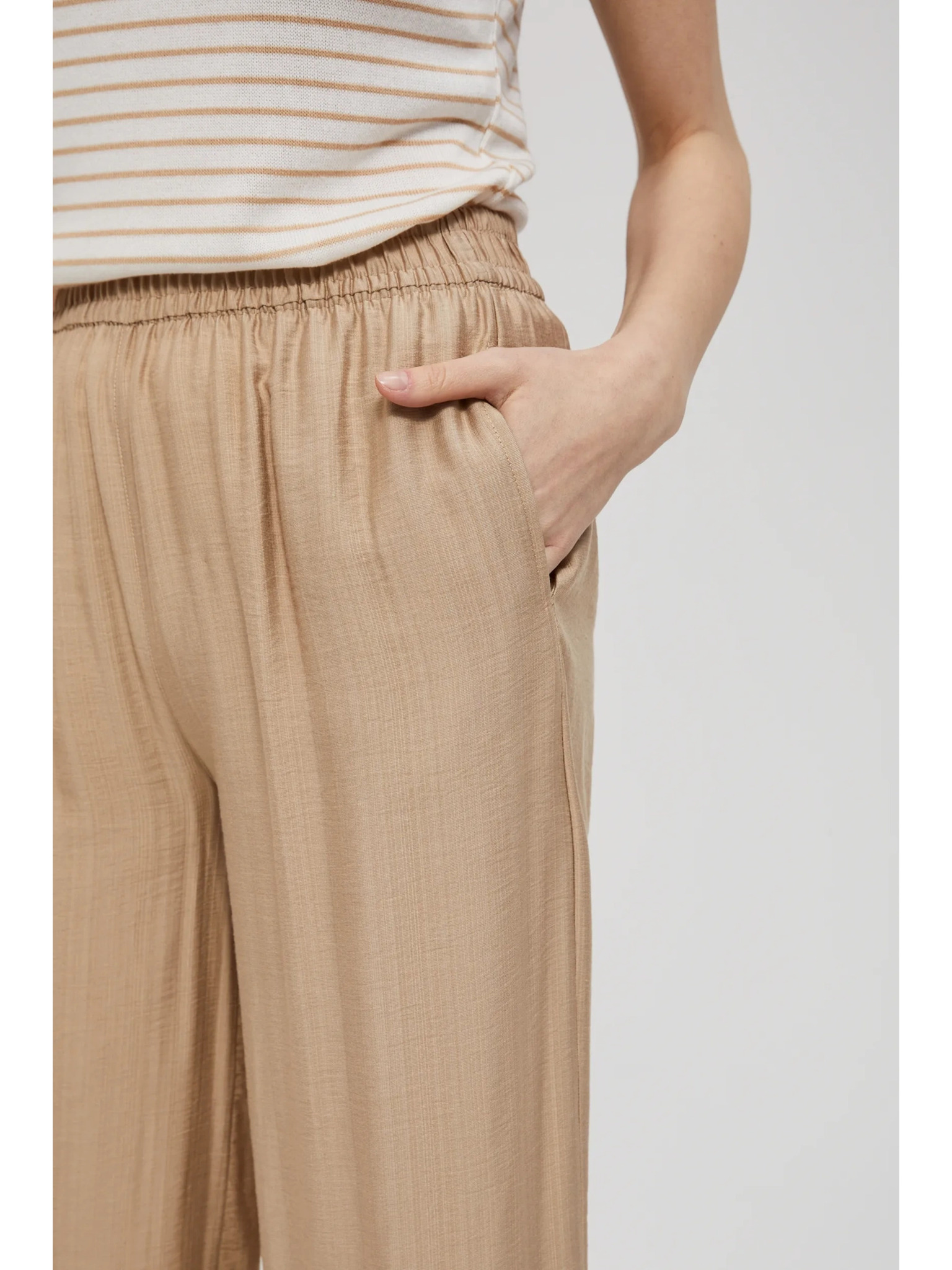 Bež hlače z širokimi hlačnicami in elastičnim pasom Moodo