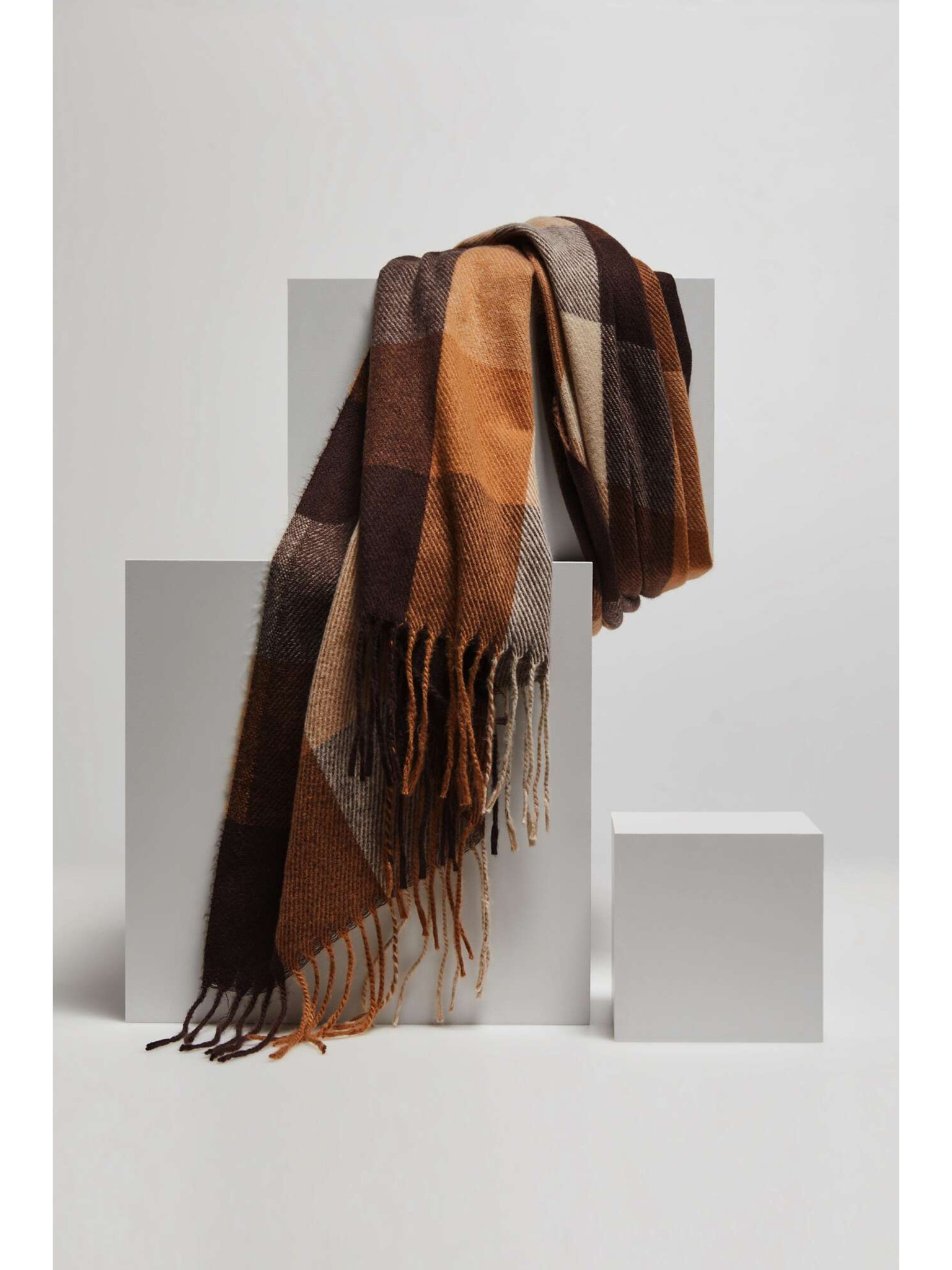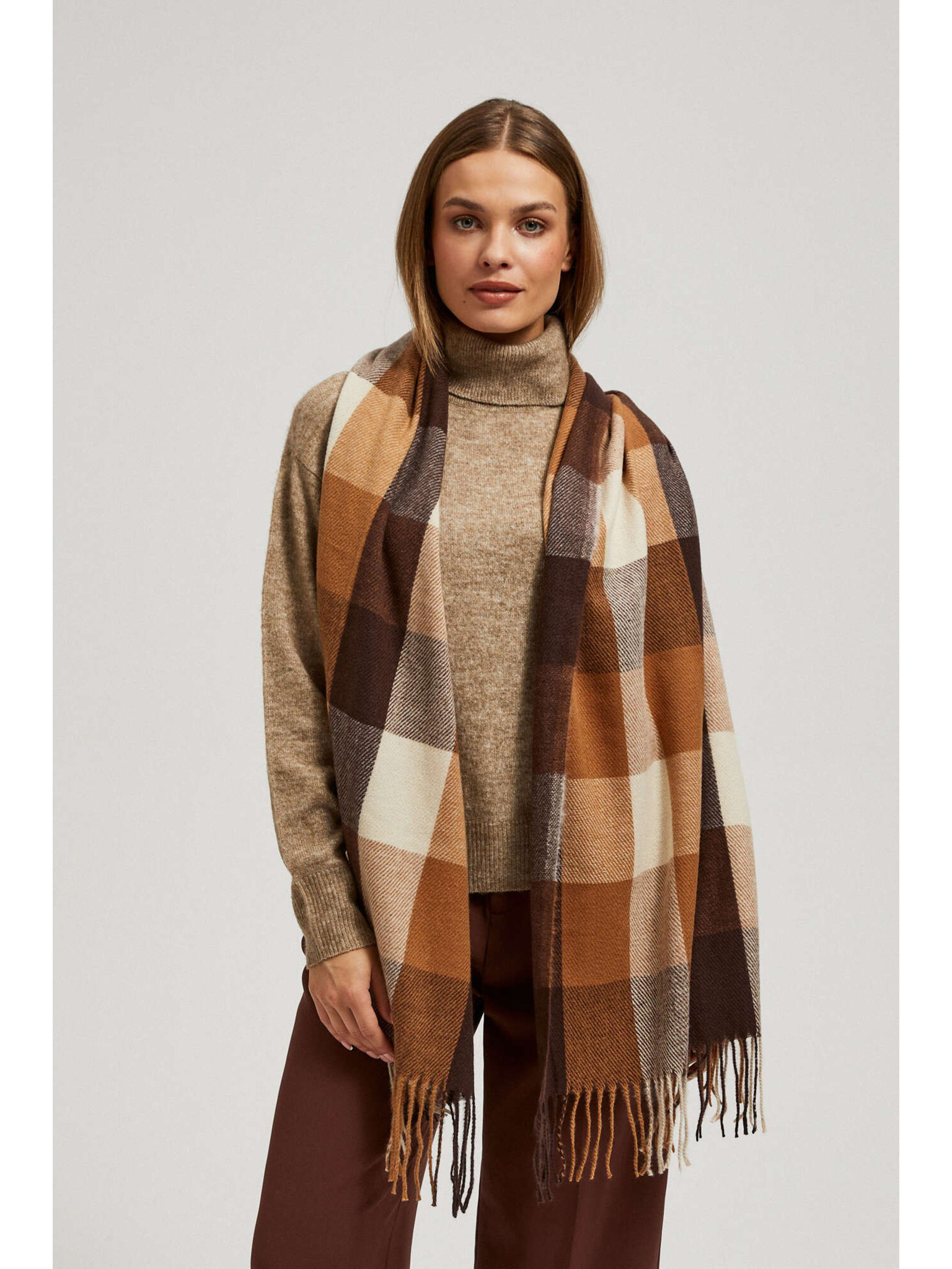 Šal z mrežastim vzorcem in resicami rjav Moodo