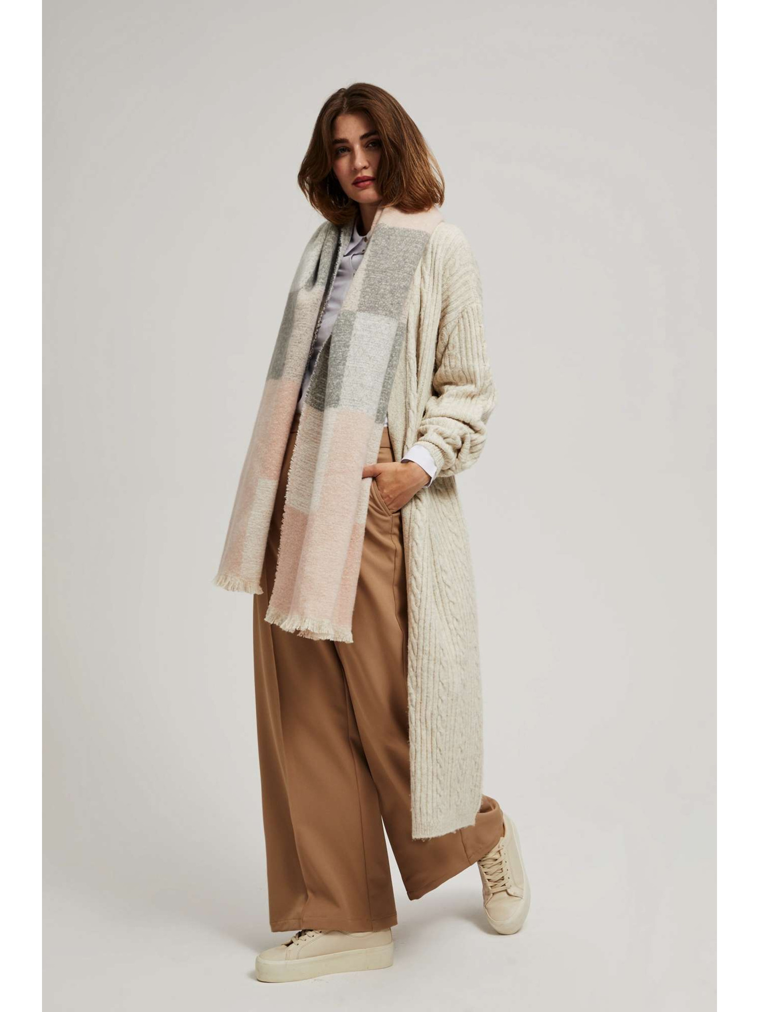 Vzorčast šal bež barve Moodo