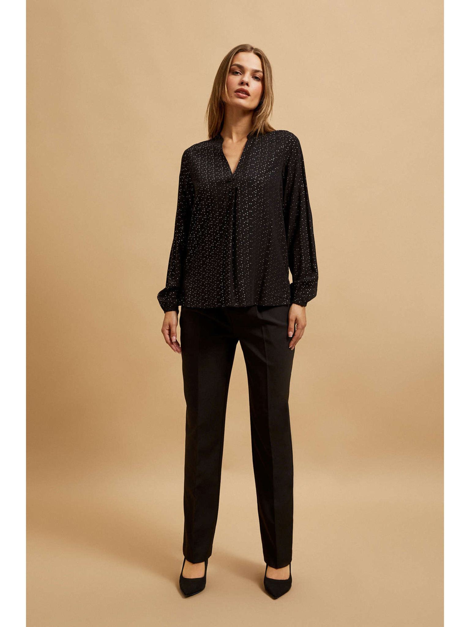 Črna srajca z V-izrezom Moodo