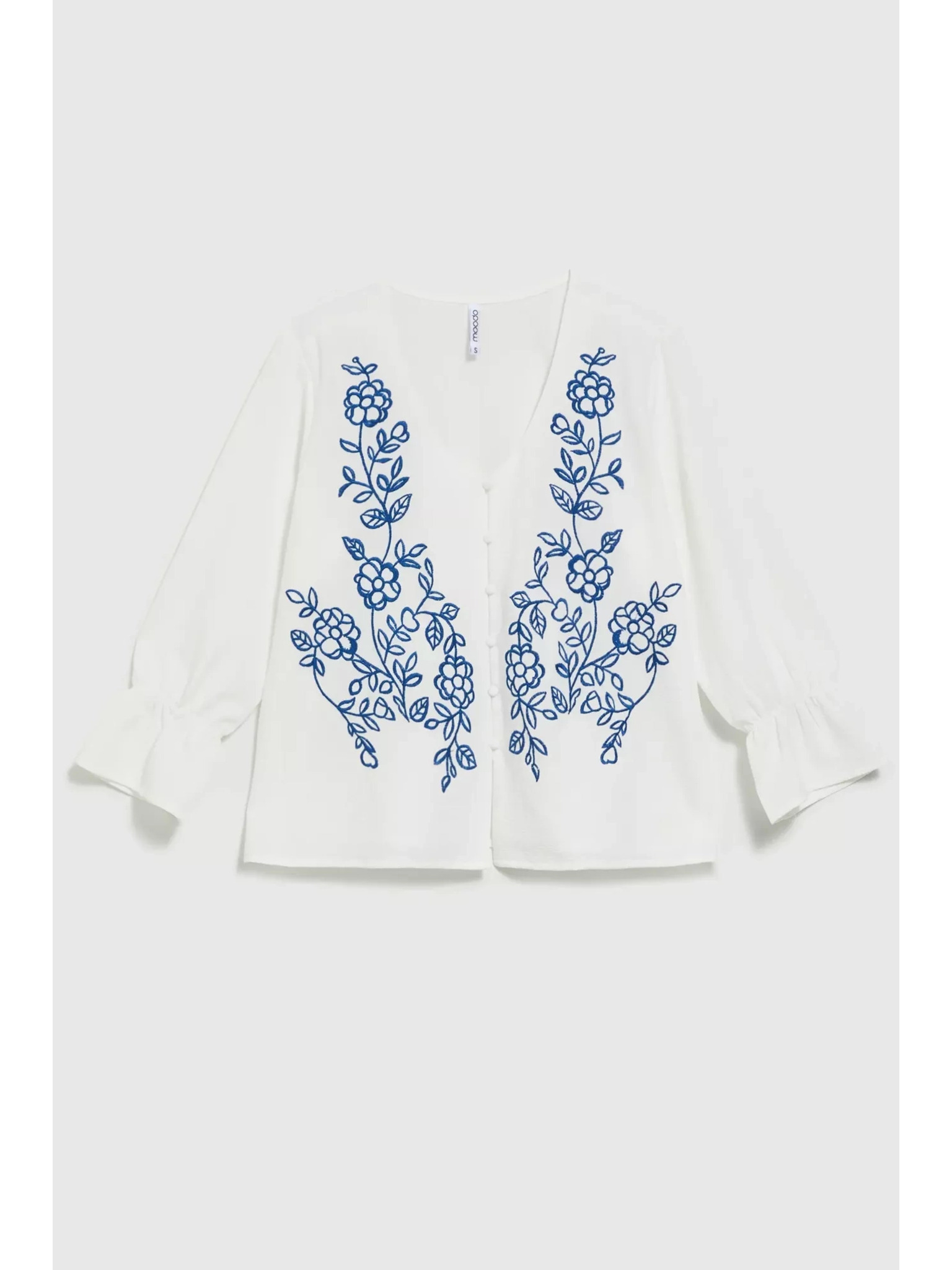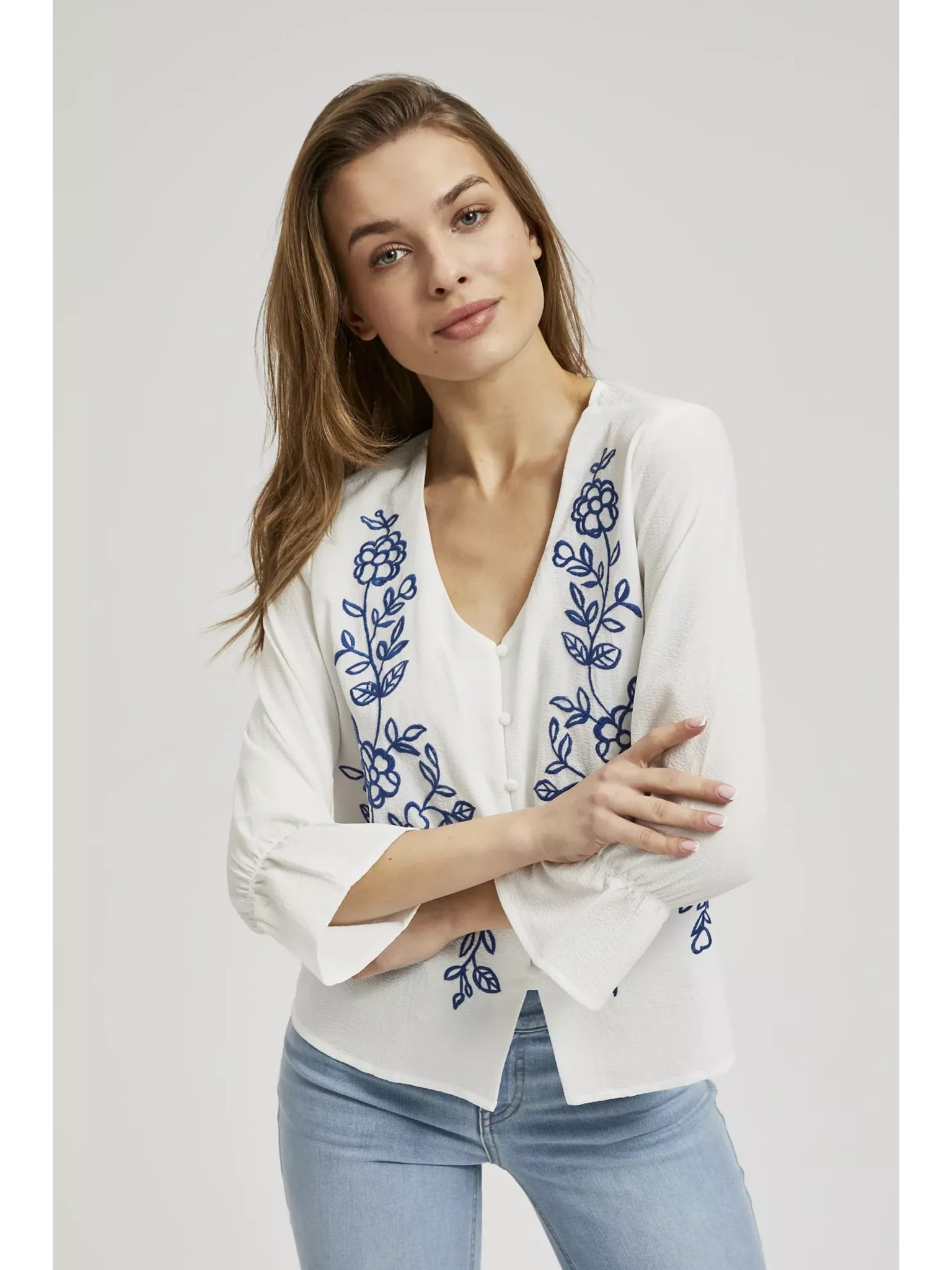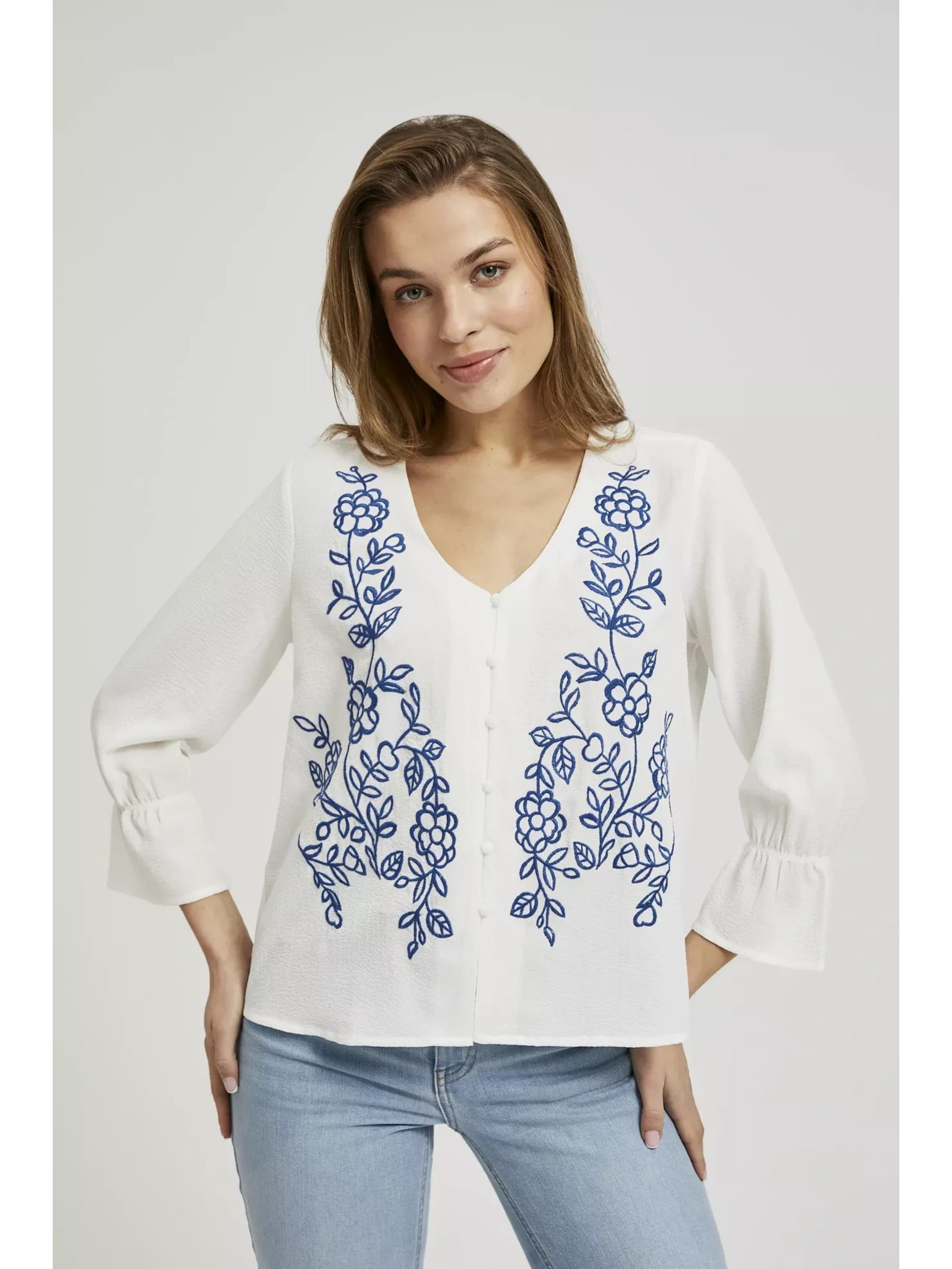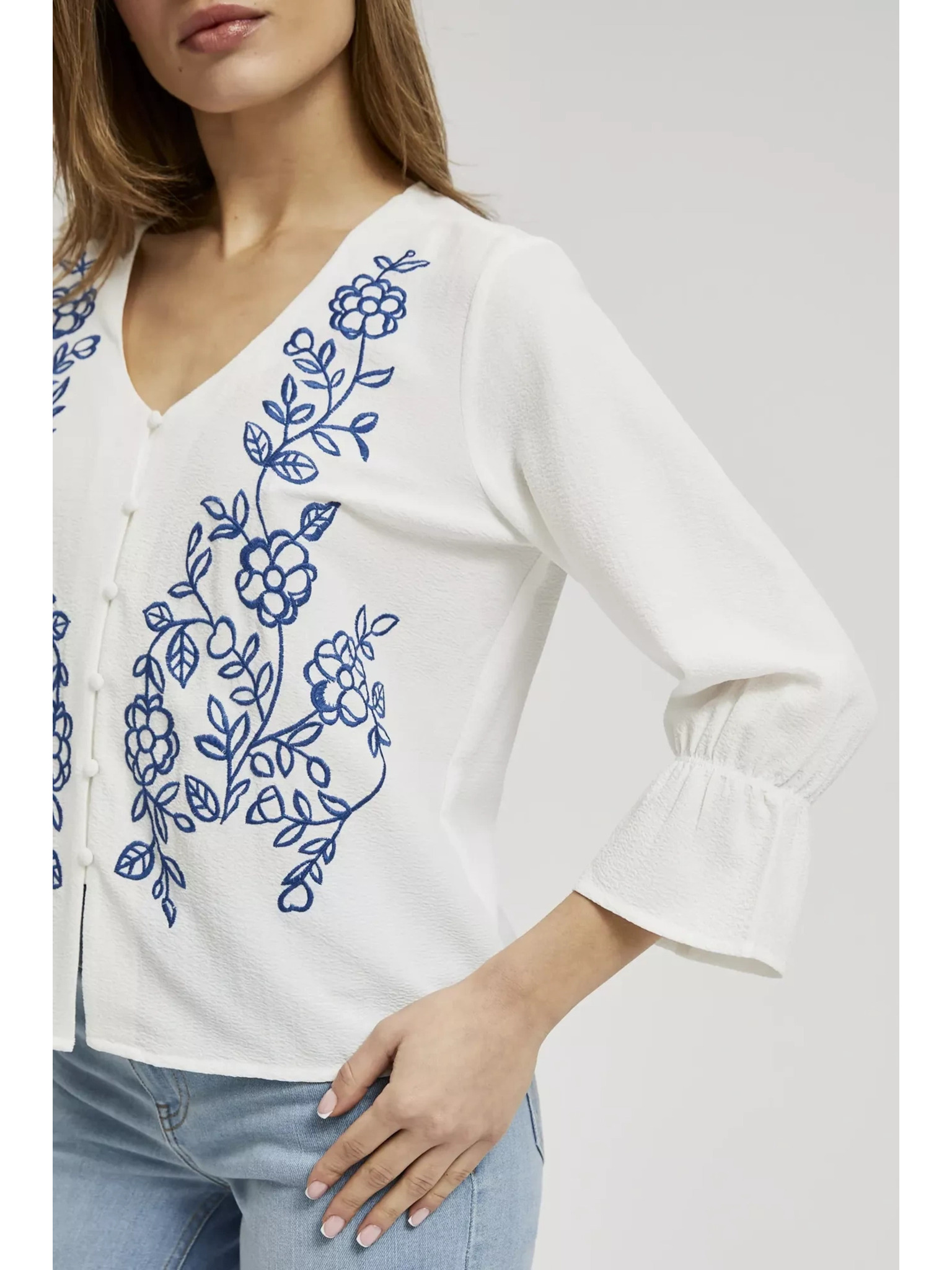 Bela bluza z okrasnimi gumbi