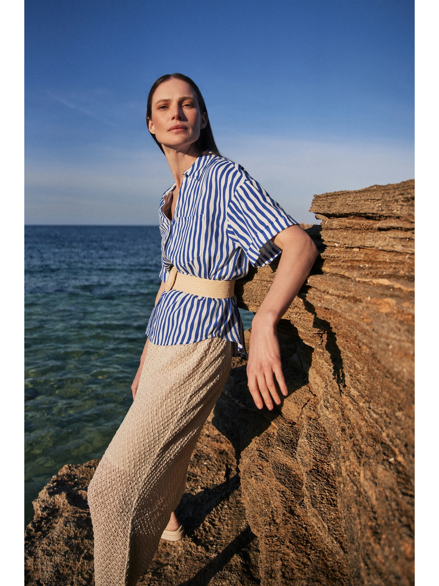 • mere modela: Model na fotografiji: višina - 173 cm, mere 82/63/92, velikost na fotografiji - zgornji del-S, spodnji del-S