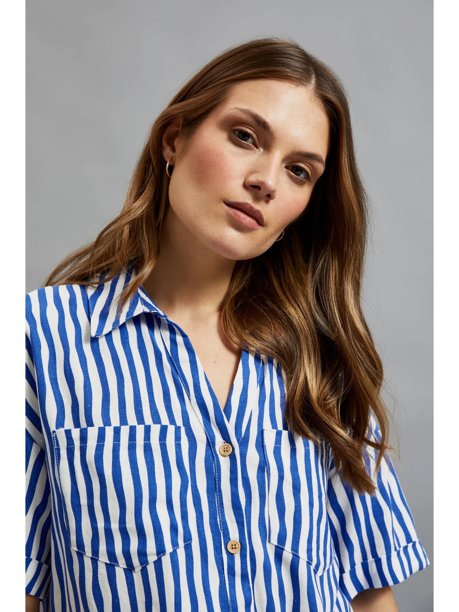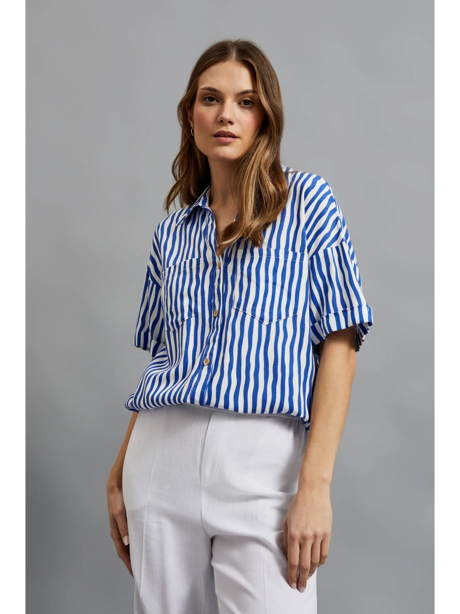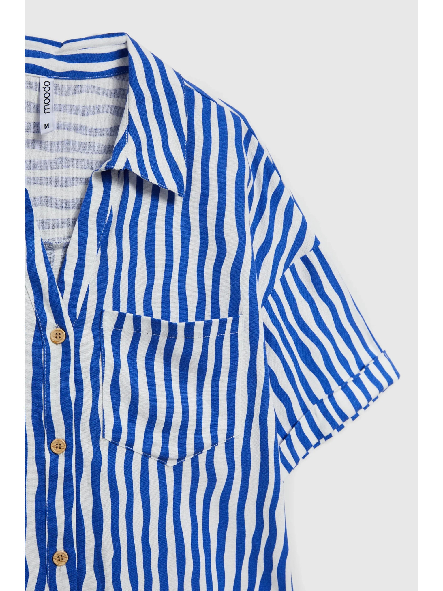 Modra prižasta srajca z gumbi in žepi Moodo