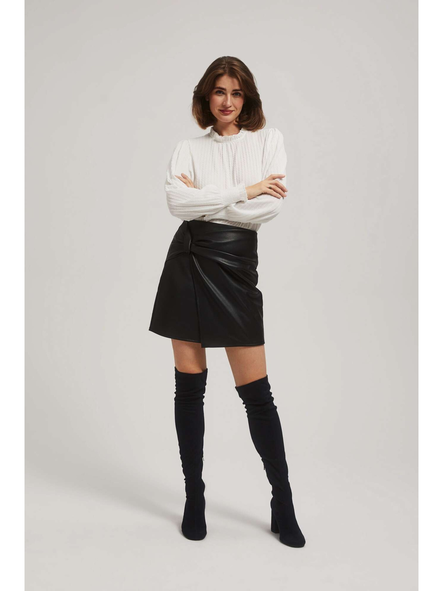 A-linijska krilo iz imitacije usnja črna Moodo