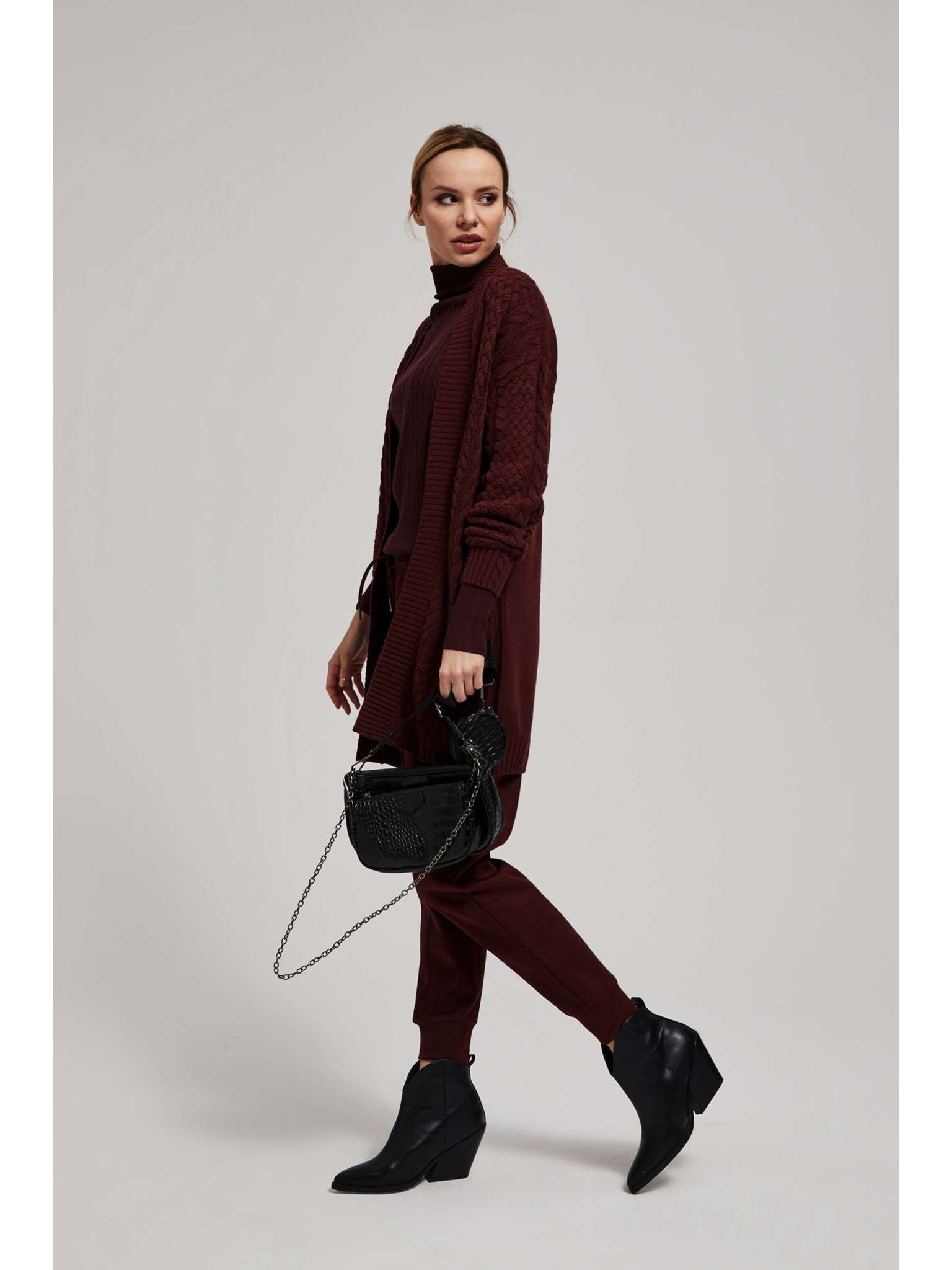 Rjav kardigan z okrasnim gumbom Moodo