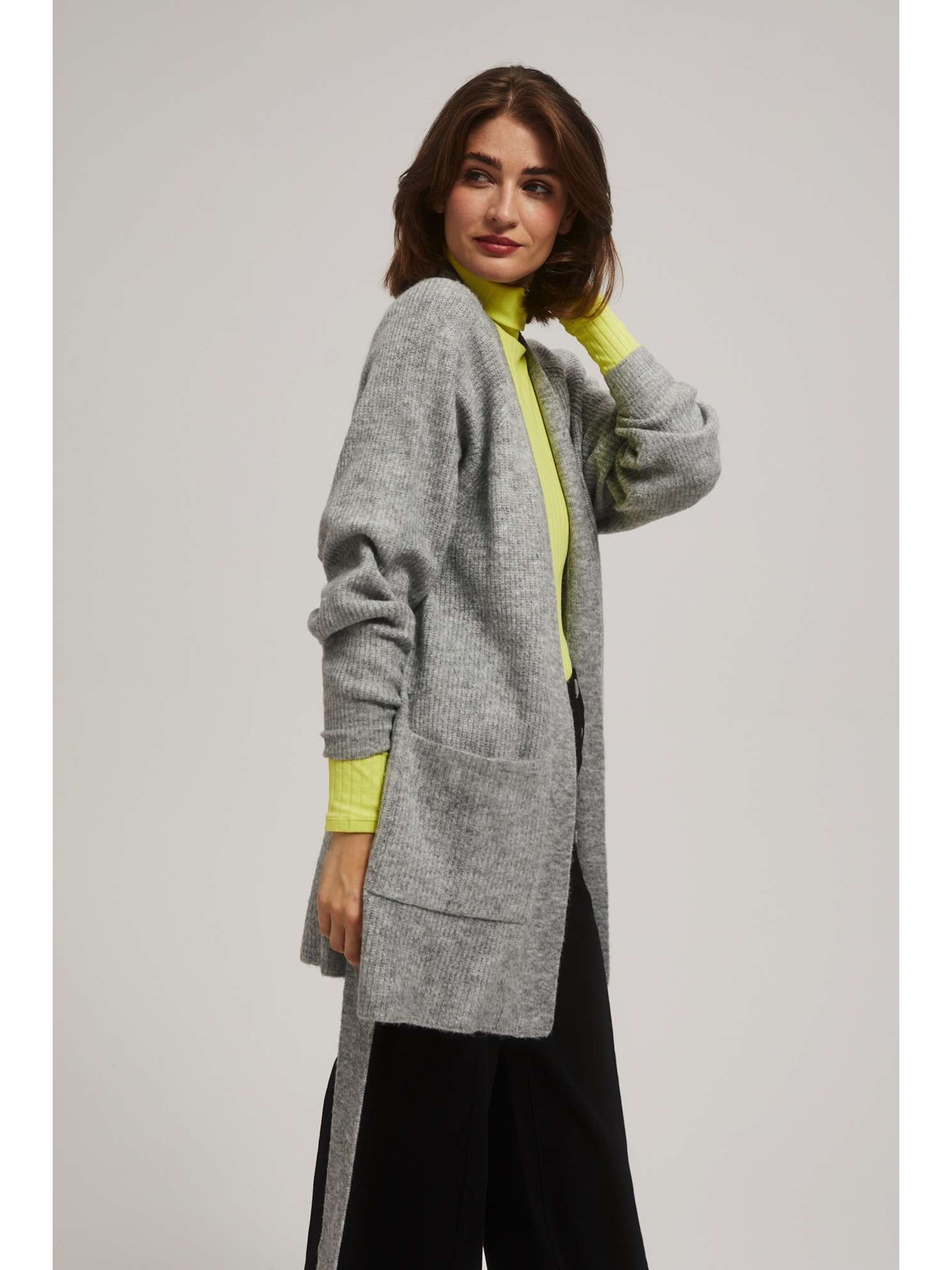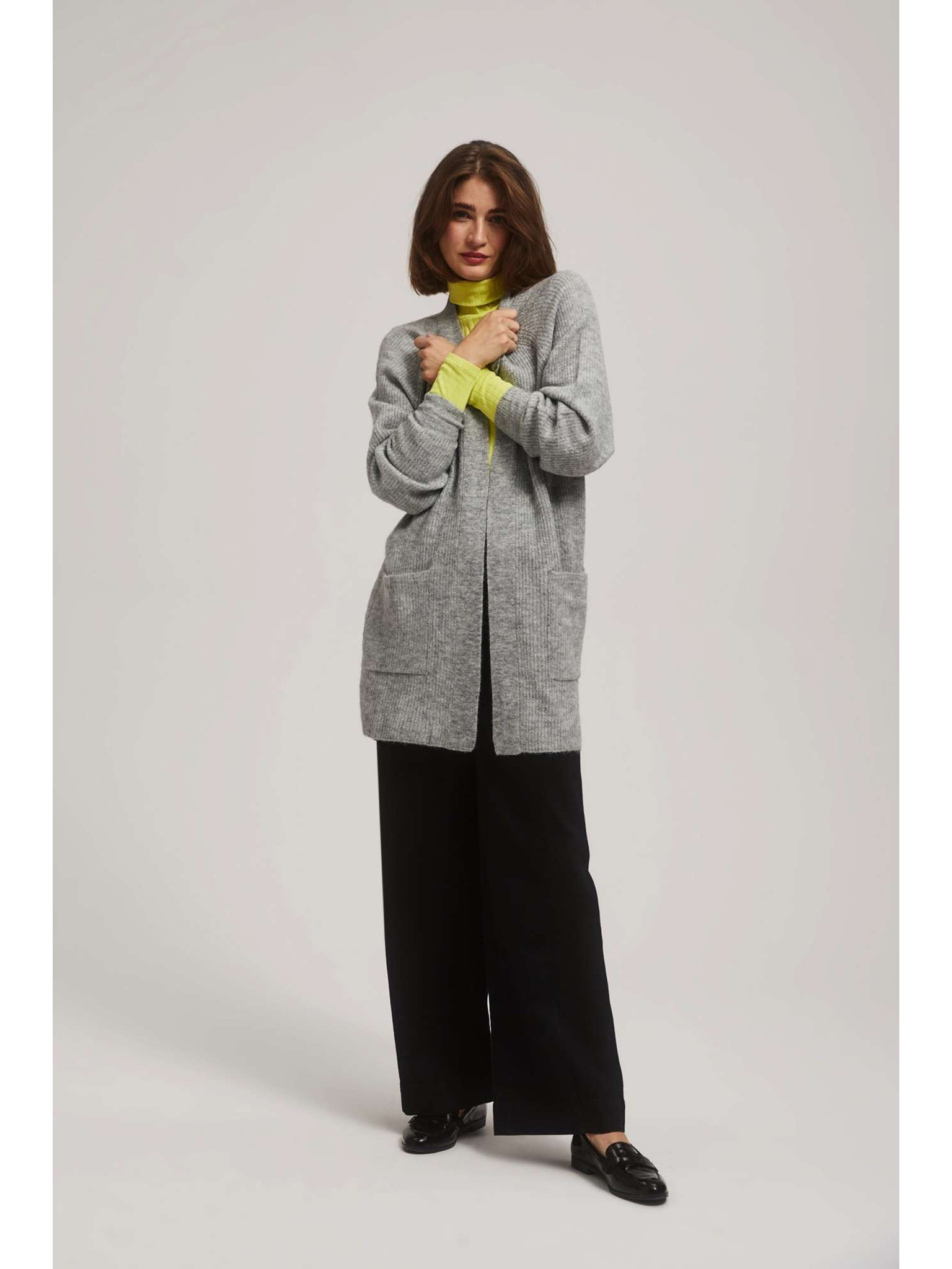 Siv kardigan na gumbe z napihnjenim rokavi Moodo
