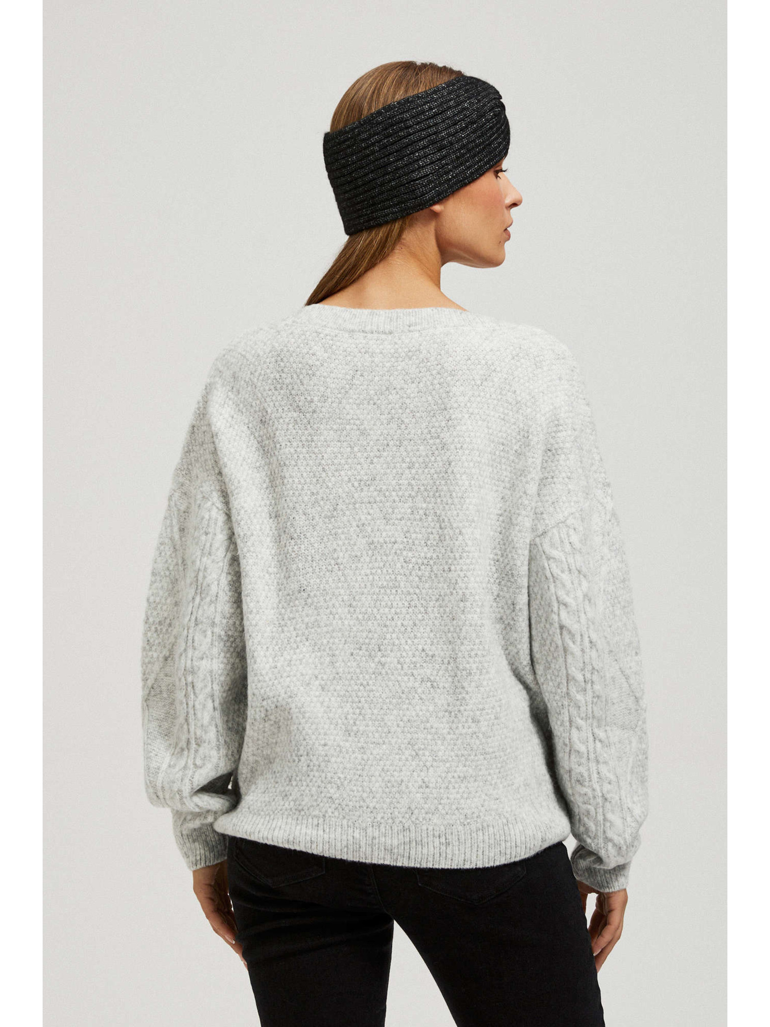 Siv gladek pulover z dolgimi rokavi Moodo