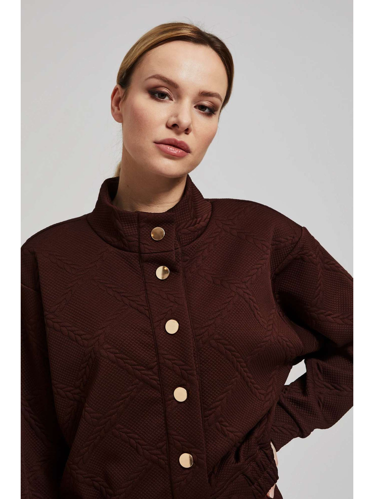 Pulover z okrasnimi gumbi rjav Moodo