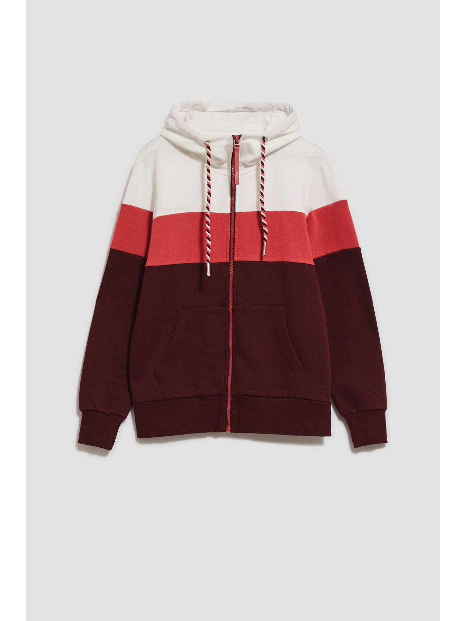 Črno-bela prožasta jopica s kapuco na zadrgo Moodo