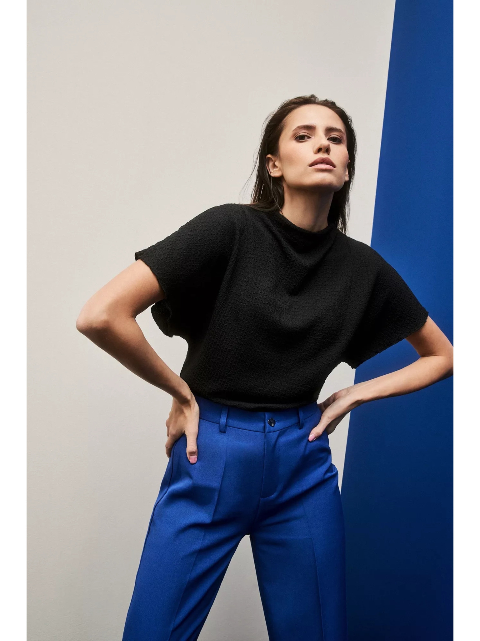 • mere modela: Model na fotografiji: višina - 173 cm, mere 82/63/92, velikost na fotografiji - zgornji del-S, spodnji del-S