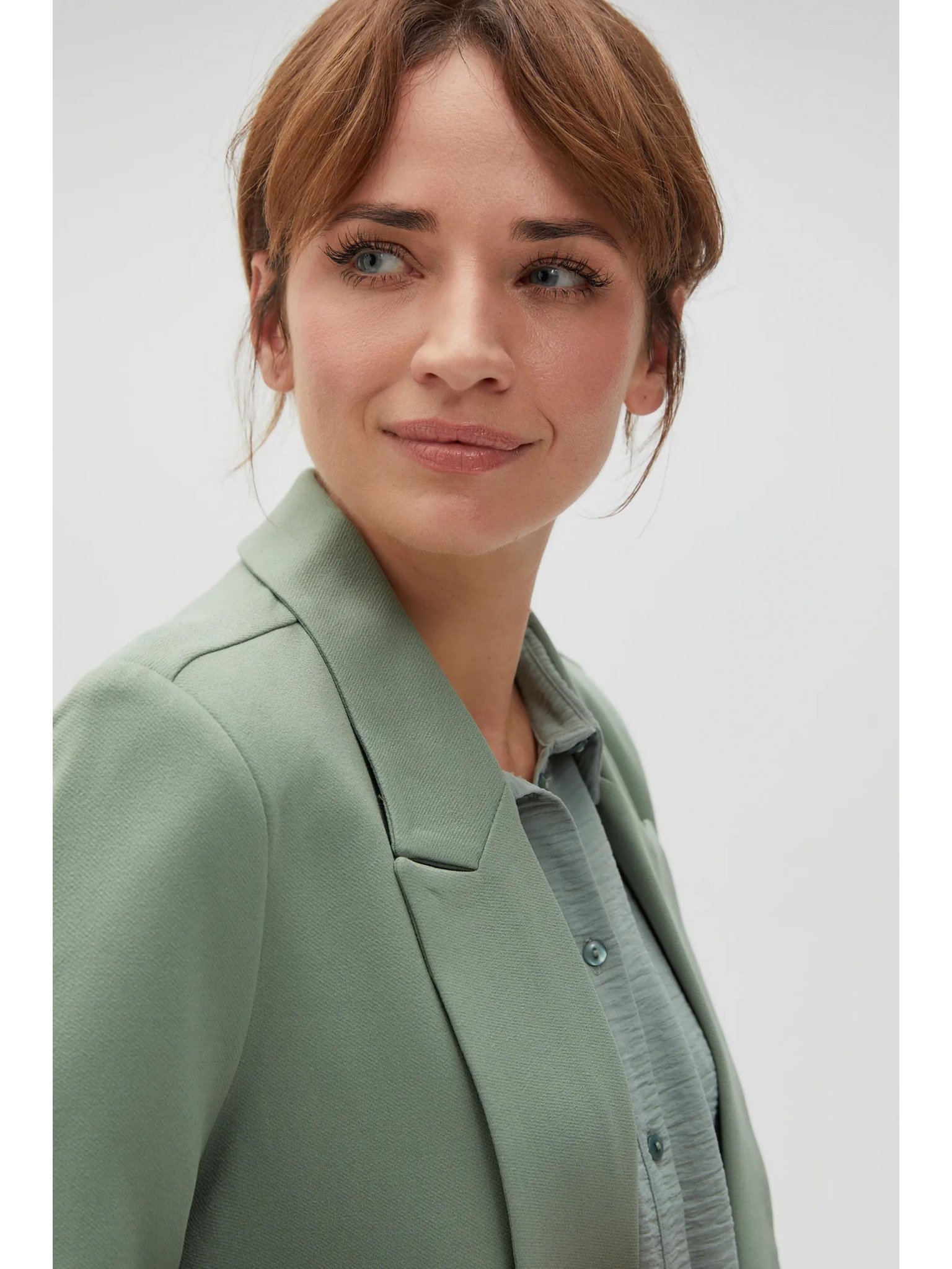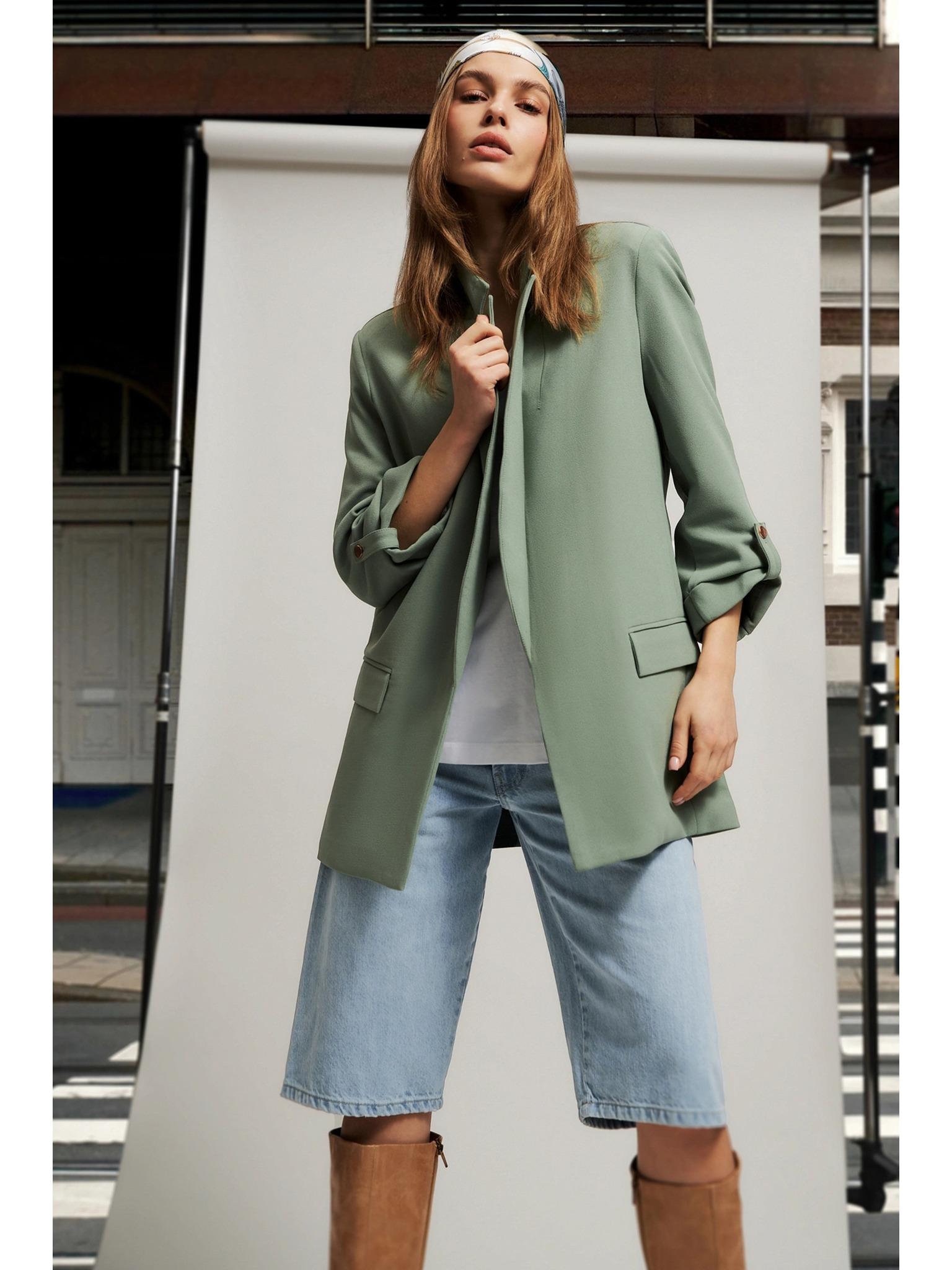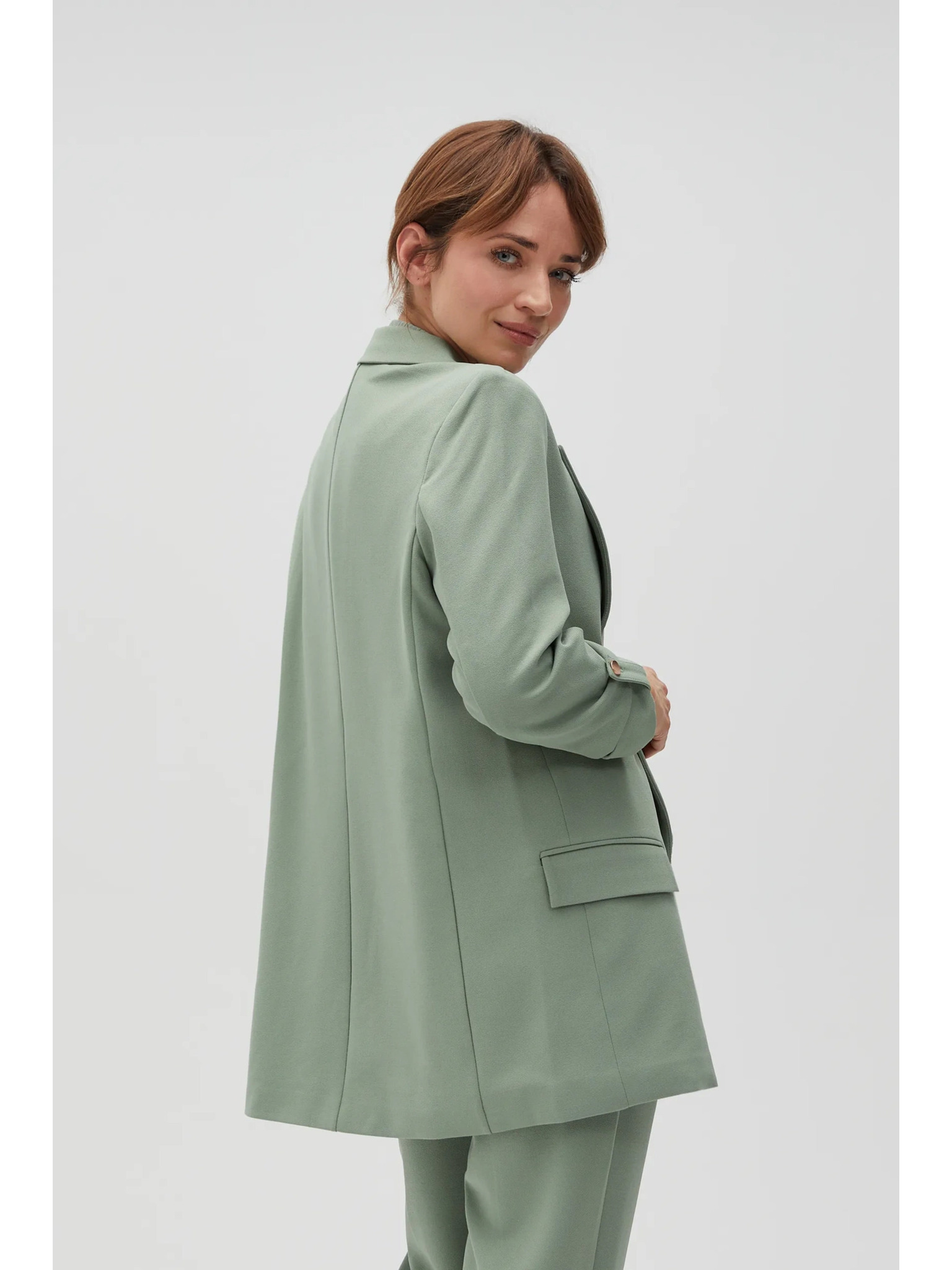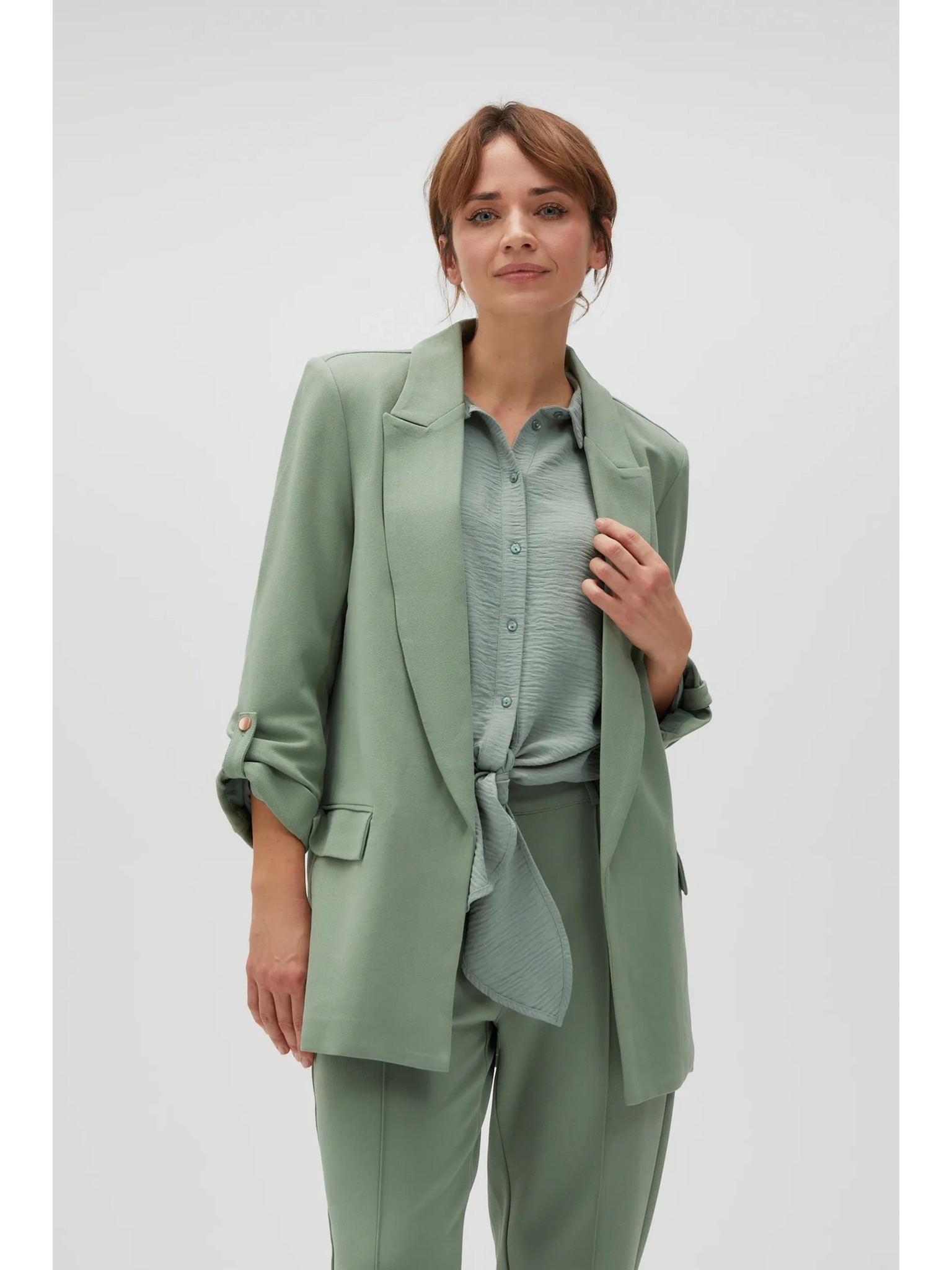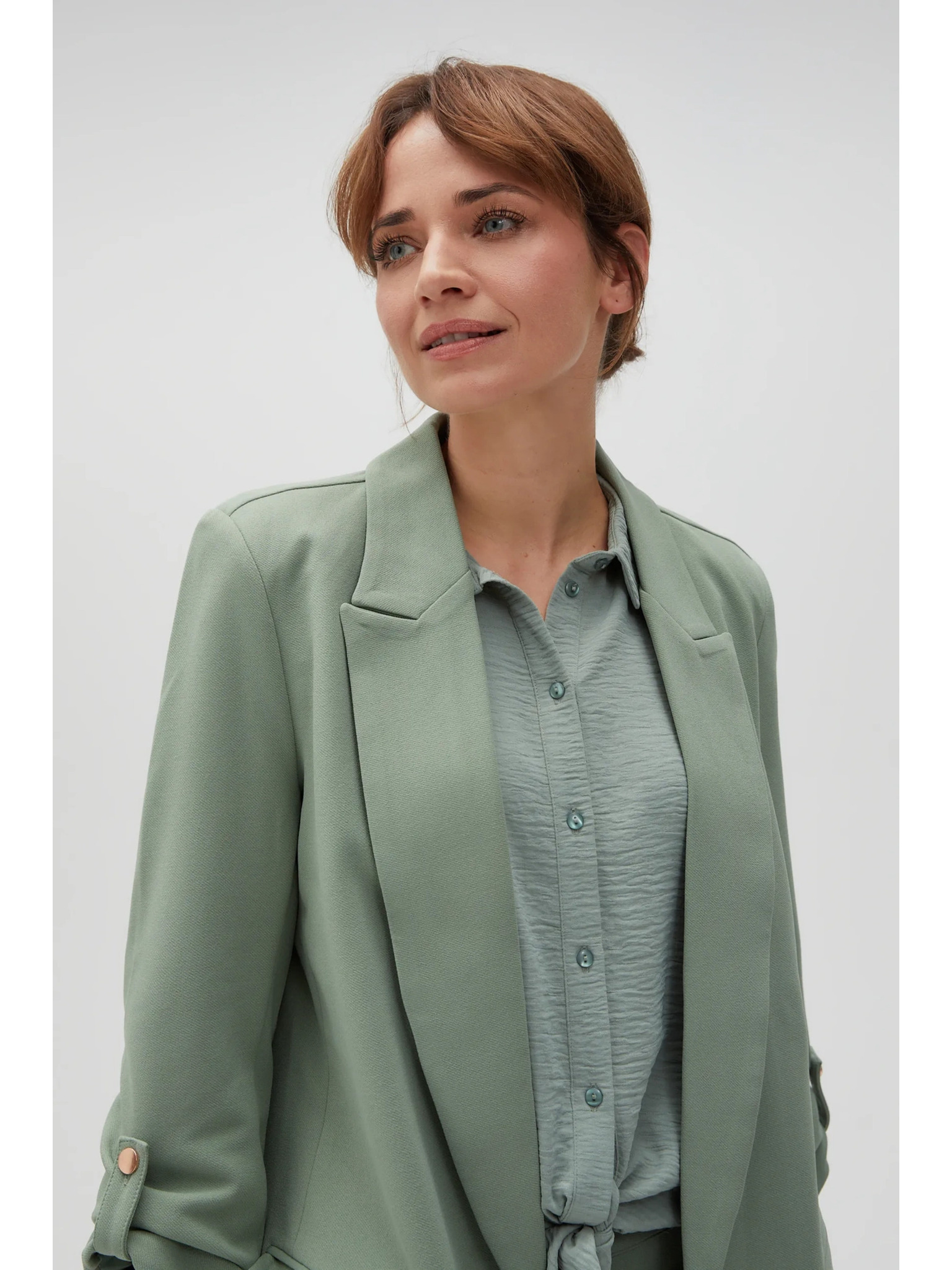 Suknjič z zavihrtanimi rokavi olivno zelen Moodo