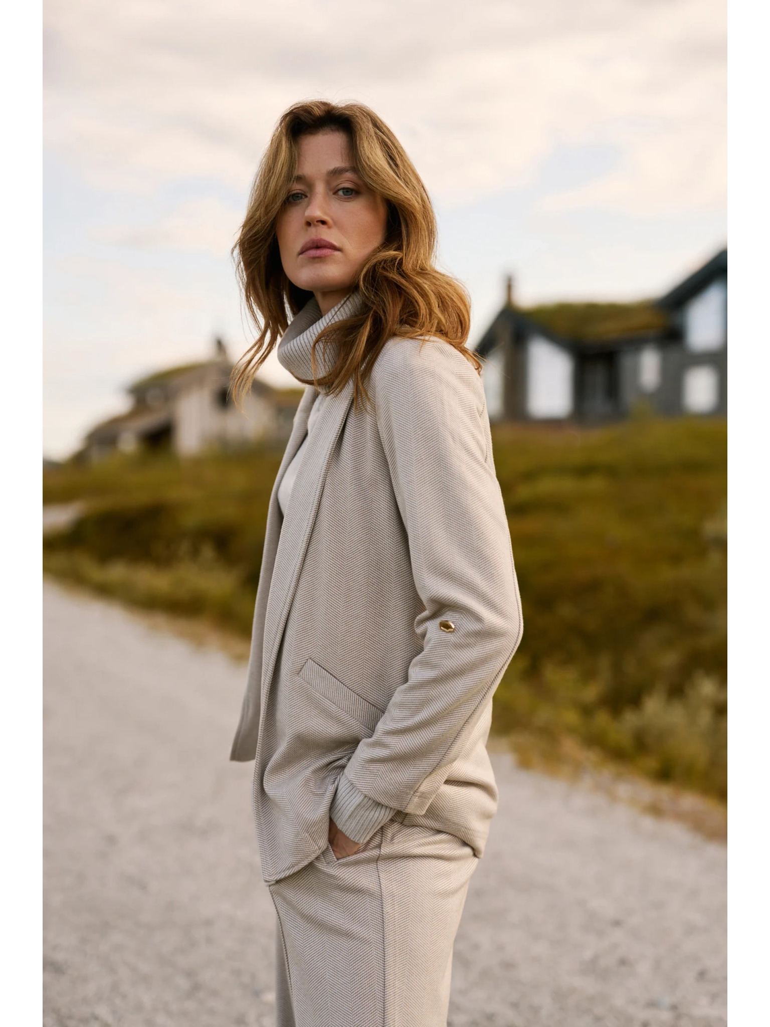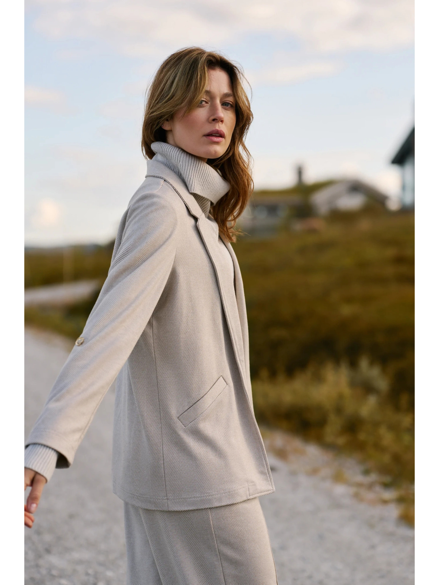 Suknjič z nagubanimi 3/4 rokavi bež Moodo